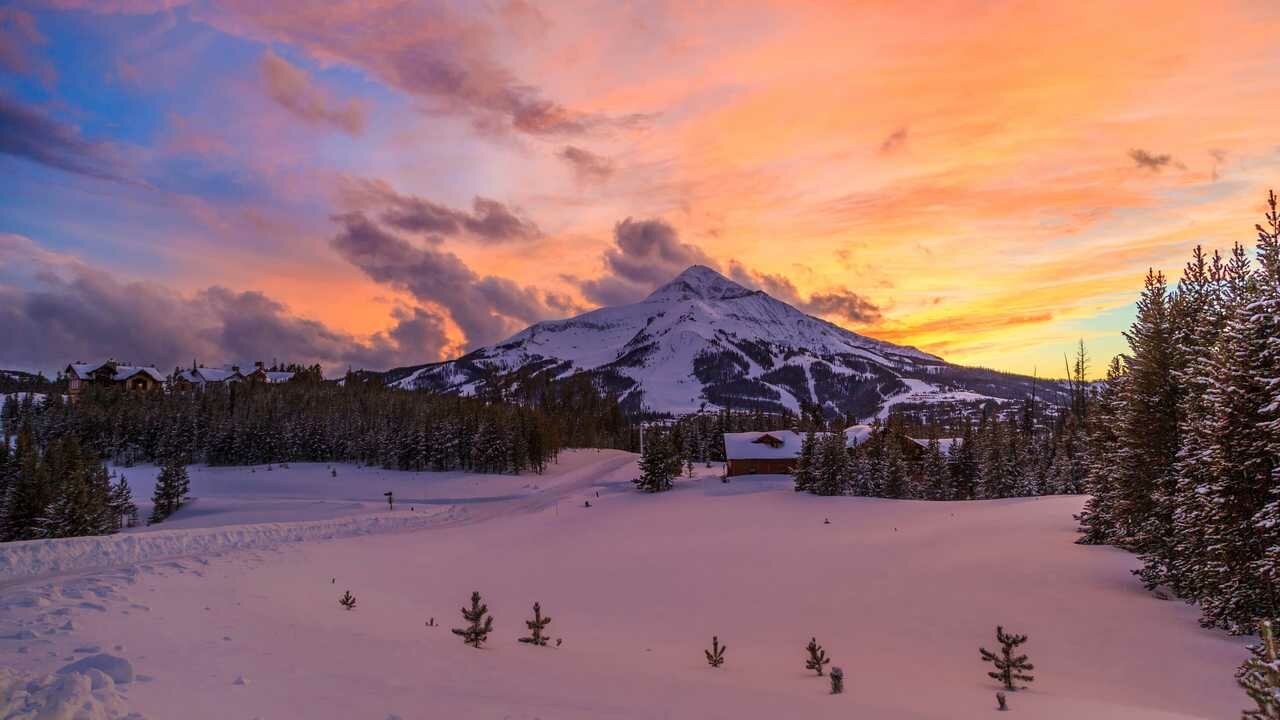 Картина на холсте 110x60 LinxOne "Зима Природа Закат Монтана" интерьерная для дома / на стену / на кухню / с подрамником информация:
