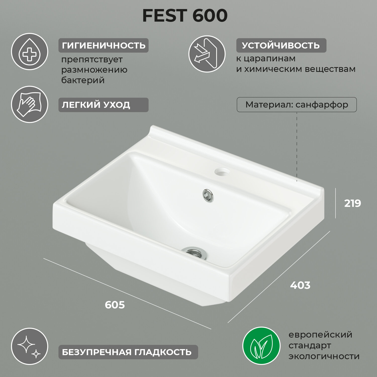 Раковина для ванной FEST 60 605х403х219 информация: