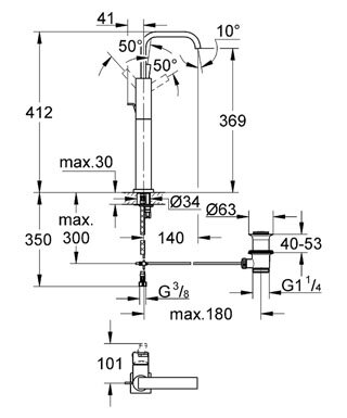 Смеситель для раковины Grohe Allure XL-Size однорычажный, с донным клапаном, хром 32249000 информация: