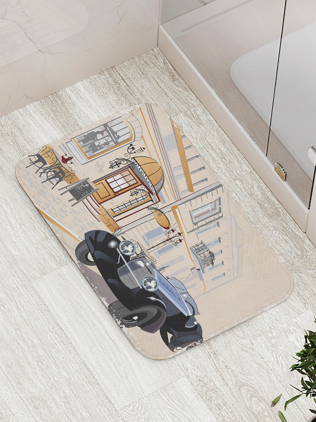Коврик для ванной комнаты и туалета противоскользящий JoyArty "Ретро кабриолет у кафе" 52х77 см информация: