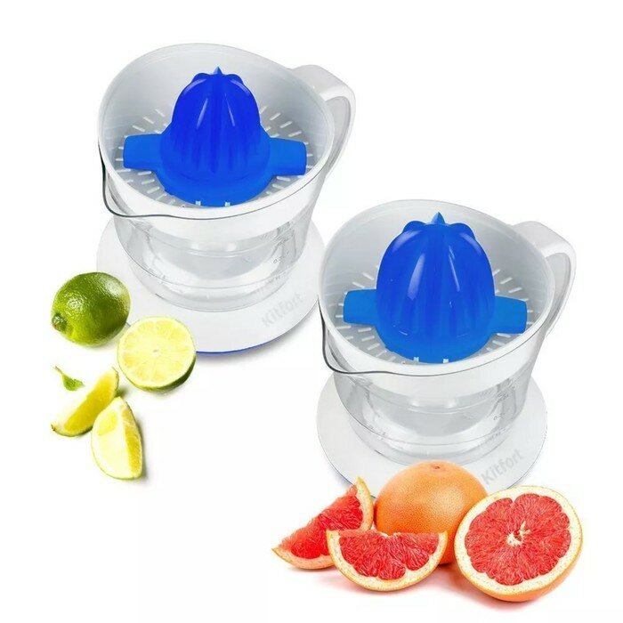 10 цен на Соковыжималка Kitfort КТ-1148-3, для цитрусовых, 25 Вт, 0.7 л, 54 об/мин, бело-синяя