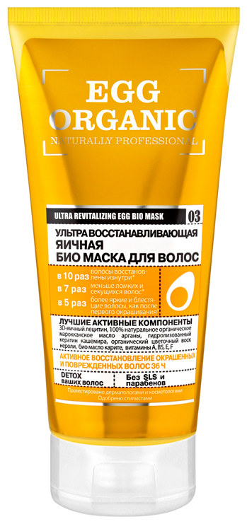 Маска био для волос Organic Naturally Ультра восстанавливающая яичная, 200мл х 1шт информация:
