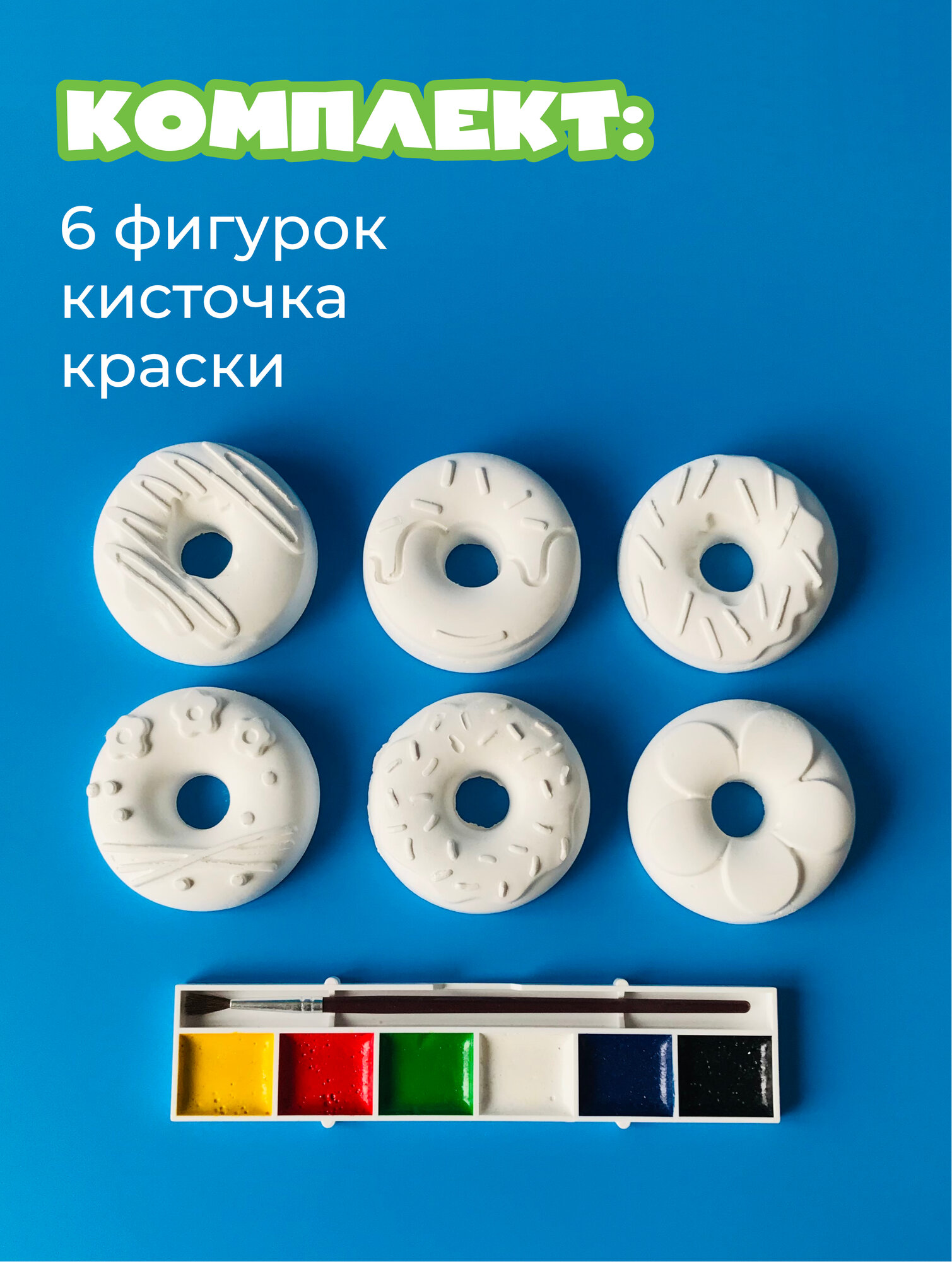Объемные раскраски пончики / многоразовая 3D развивашка фигурки 7 шт, кисточка, краски / Творческая мастерская Сделай Сам информация: