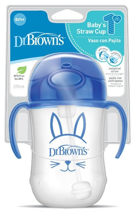 Поильник Dr. Brown's DR.BROWNS 270 мл 6 мес+, с гибкой трубочкой, голубой