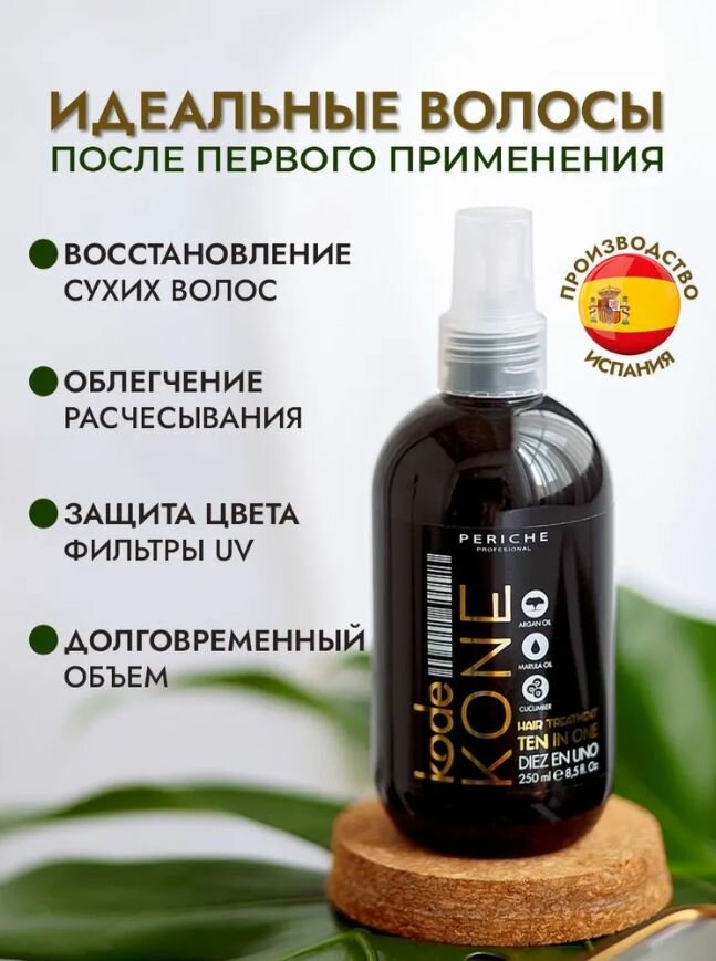 Periche Profesional Несмываемая маска-спрей 10 в 1 Kode "KONE Hair Treatment Ten In One", 250мл / спрей восстанавливающий / спрей термозащитный / Маска восстанавливающая несмываемая /маска разглаживающая /спрей облегчающий расчесывание