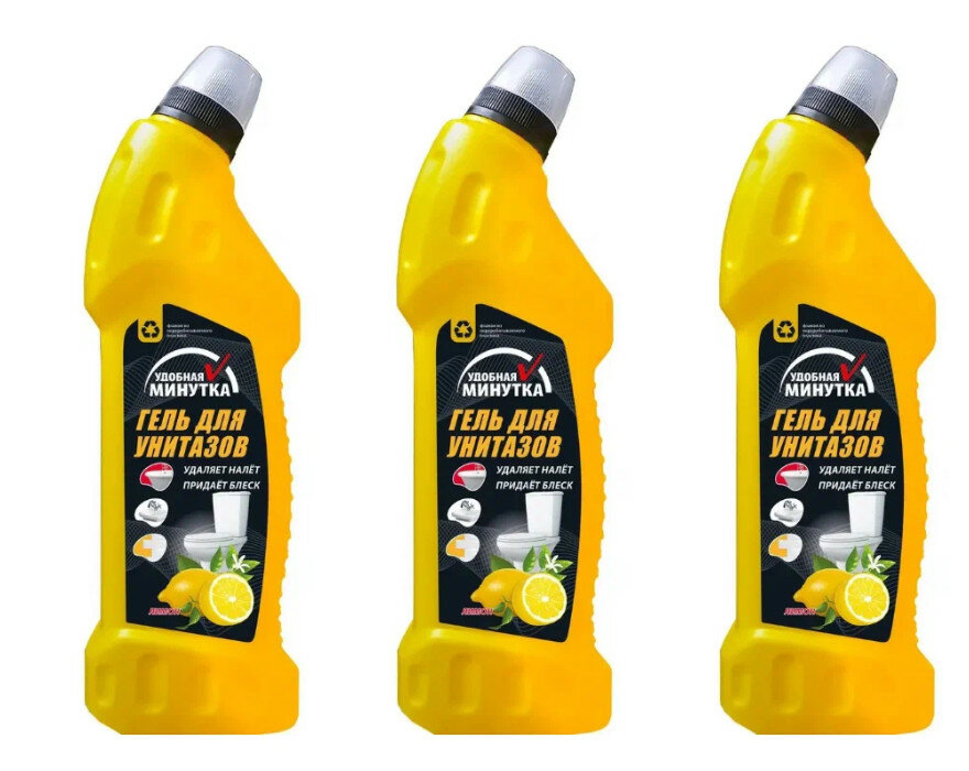 Гель для чистки унитазов Удобная минутка с лимоном, 750 мл, 3 шт информация: