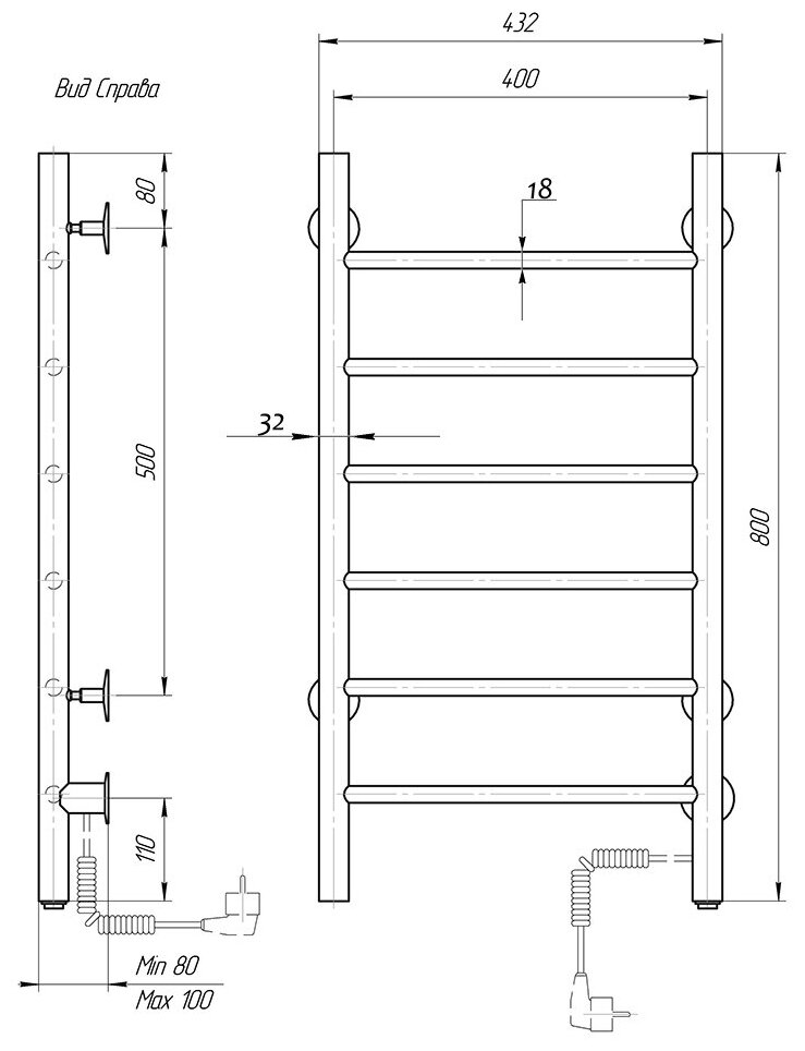 Domoterm Электрический полотенцесушитель Аврора 432х800 хром DMT 109-6 40x80 EK R Domoterm