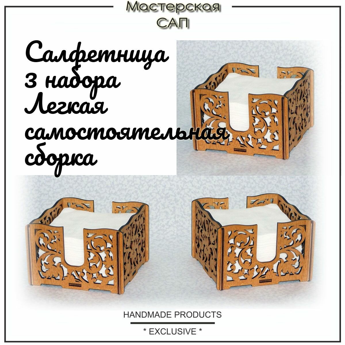 Салфетница 3 штуки / с узором "цветок"/ набор для сборки информация: