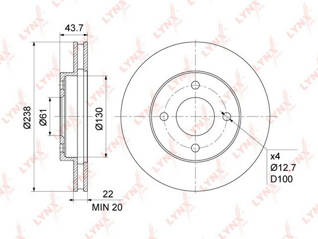 Диск тормозной передний вентилируемый (238x22) NISSAN Micra(K12) 1.2-1.5D 03> / Note(E11) 1.4-1.5D 05-12 / Tiida 1.5 04-09 / Cube(Z11) 1.4-1.5 02-08 BN-1109 информация: