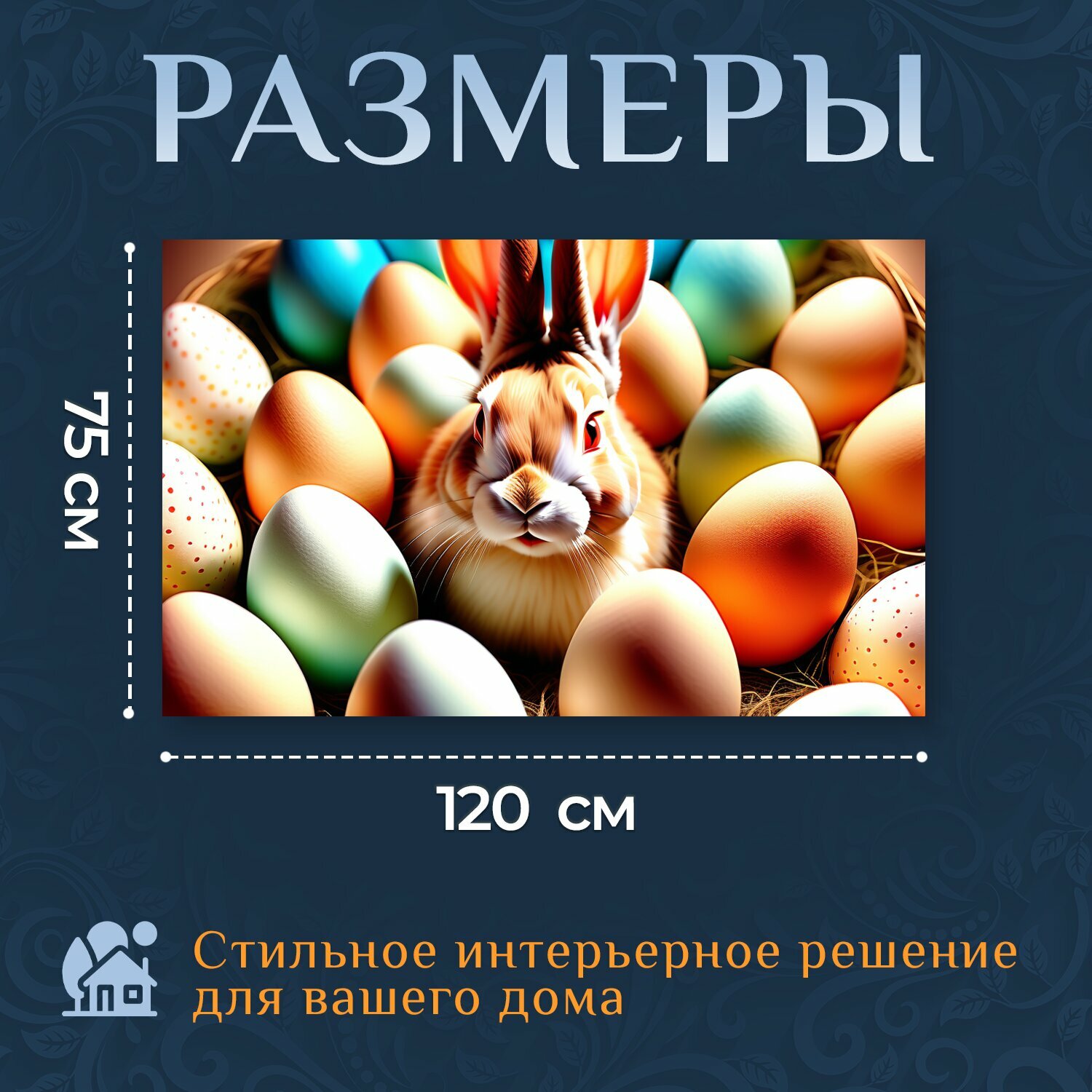 Картина на холсте детям "Праздник, светлый, пасха, кролик, яйца" на подрамнике 120х75 см. для интерьера информация:
