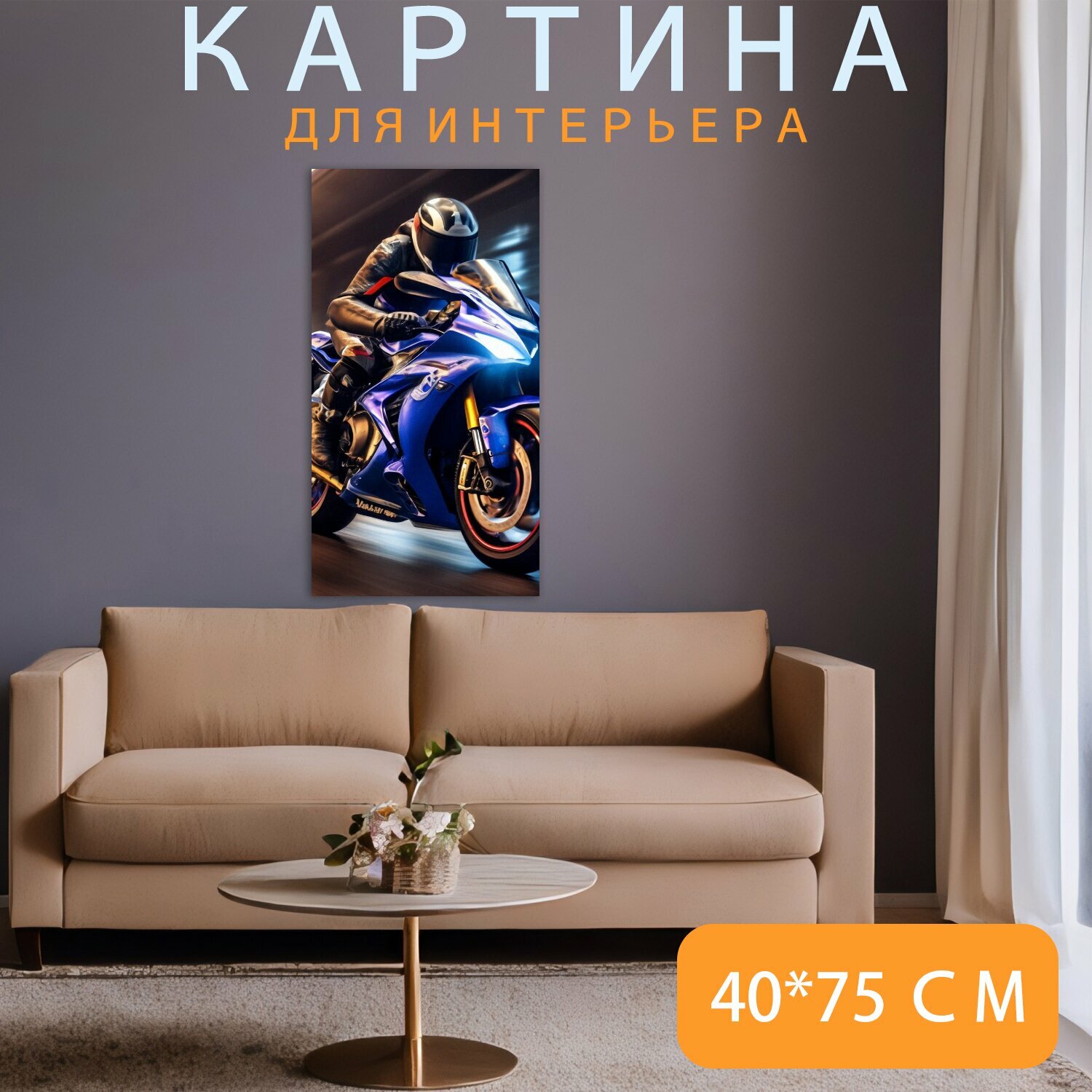 10 цен на Картина на холсте Водителям "Мотоцикл, Спортбайк, дорога, синий, Скорость, адреналин, спортбайк, мотоцикл" на подрамнике 40х75 см. для интерьера