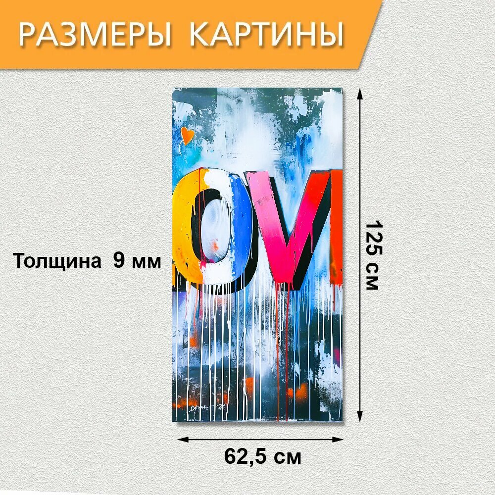 Вертикальная картина на ОСП для молодежи, для подарка "Надпись на английском LOVE, сделана в стиле граффитияпонский воин, буквы разноцветные яркие, арт современный" 62x125 см. для интерьера на стену информация: