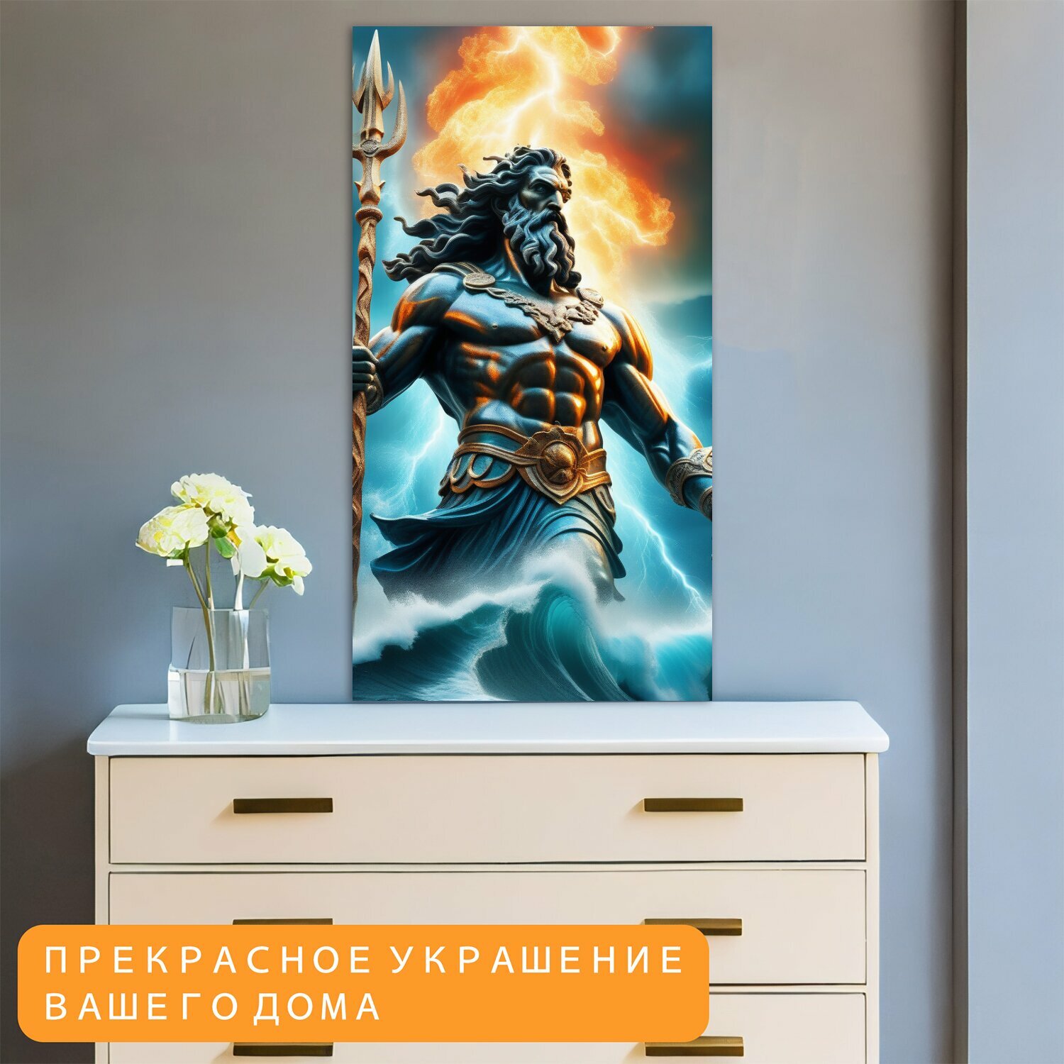 10 цен на Картина на холсте историкам "Царь, море, посейдон, трезубец, бог" на подрамнике 40х75 см. для интерьера