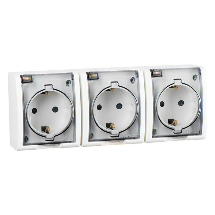 Розетка трехместная Simon SIMON 15 AQUA, открытый монтаж, с заземлением, с крышкой, белый, 1594437-030 информация: