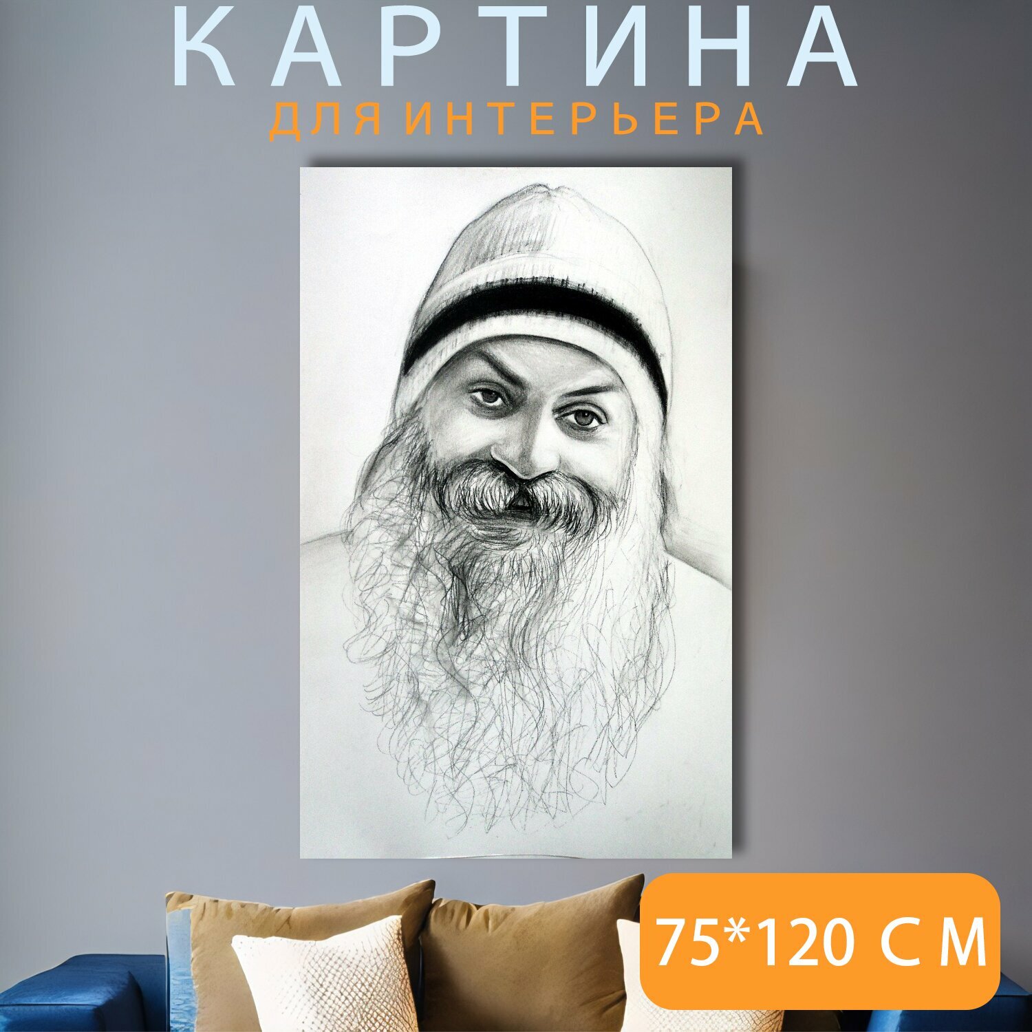 10 цен на Картина на холсте "Ошо, гуру, учитель" на подрамнике 75х120 см. для интерьера