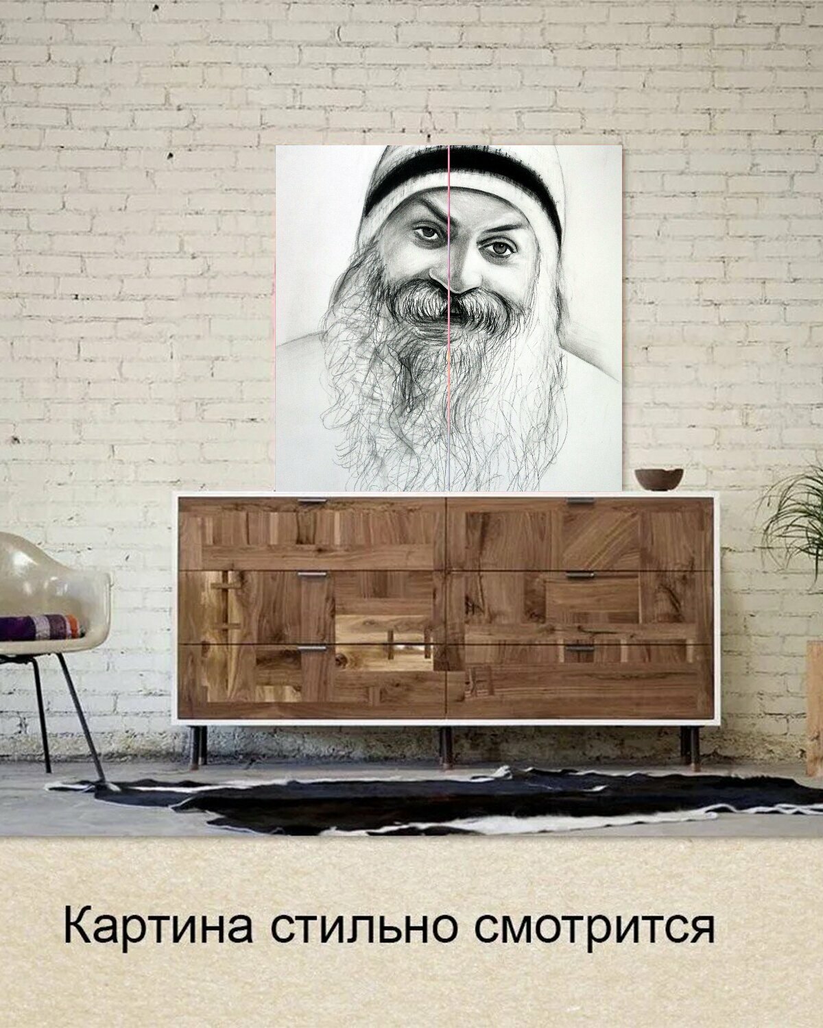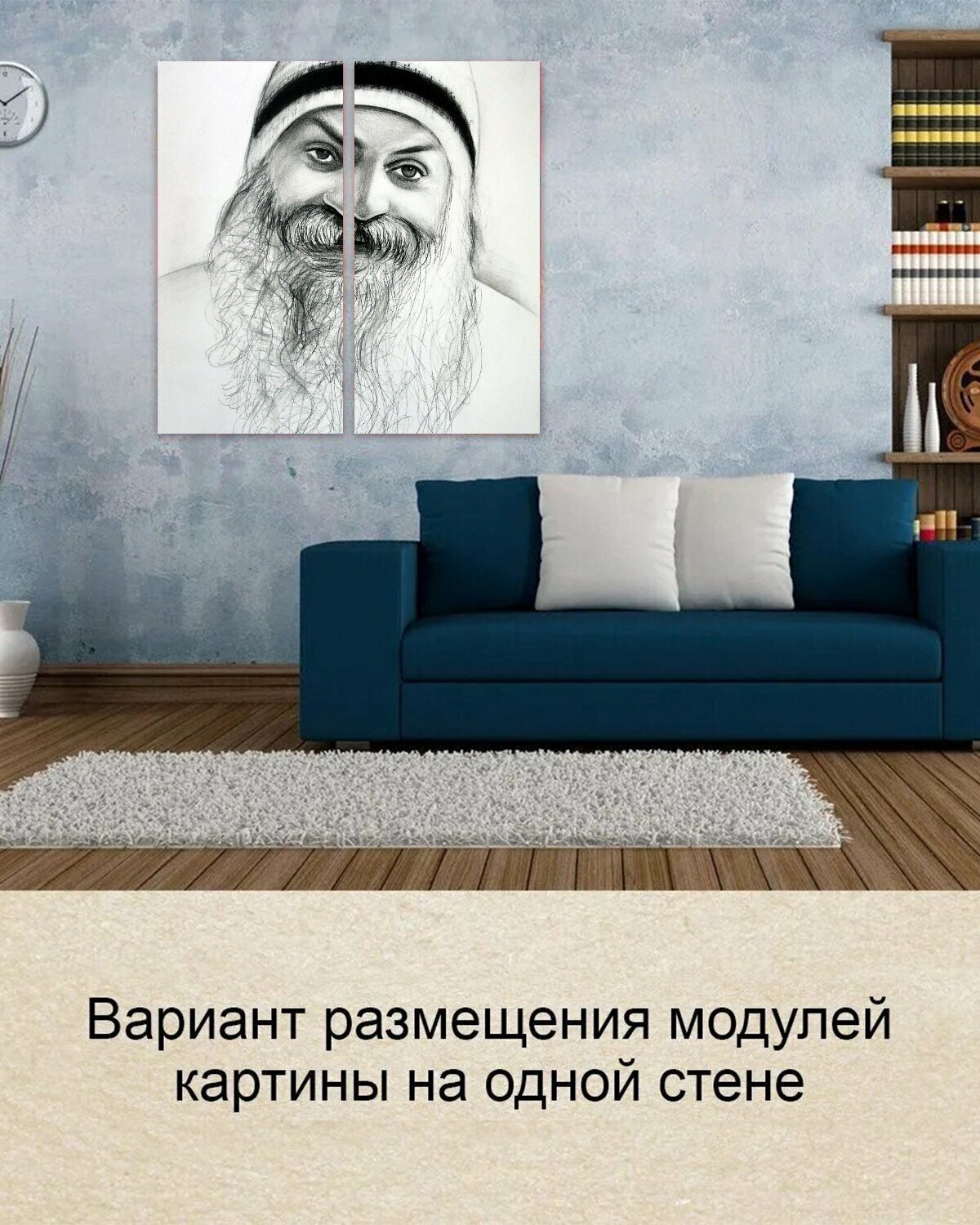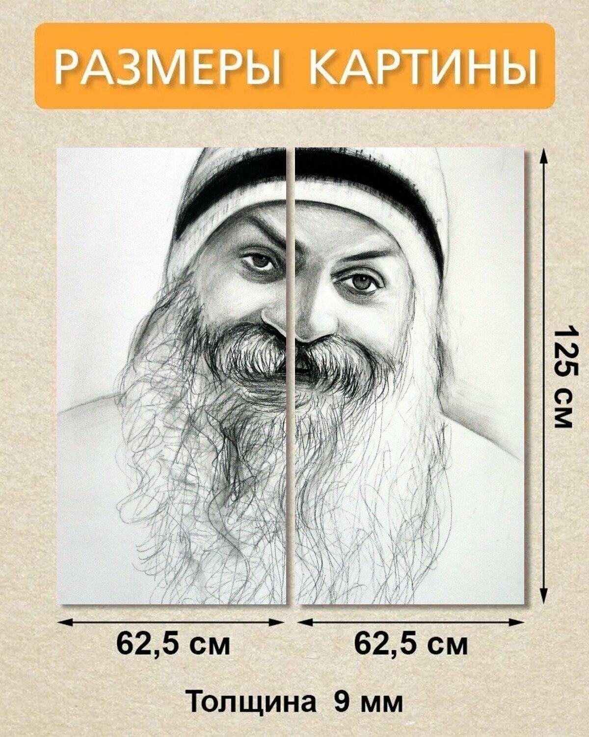 Отзывы на Модульная картина на ОСП "Ошо, гуру, учитель" 125x125 см. 2 части для интерьера на стену
