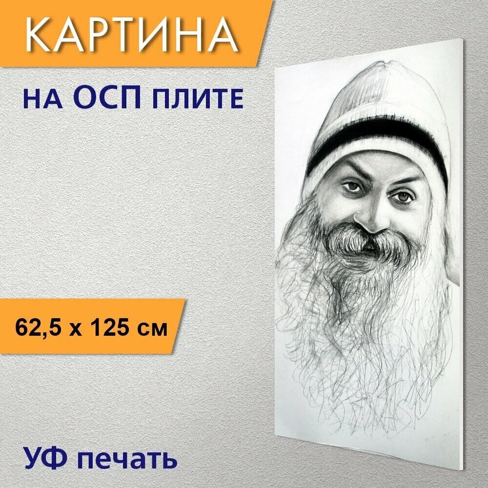 Вертикальная картина на ОСП "Ошо, гуру, учитель" 62x125 см. для интерьера на стену информация: