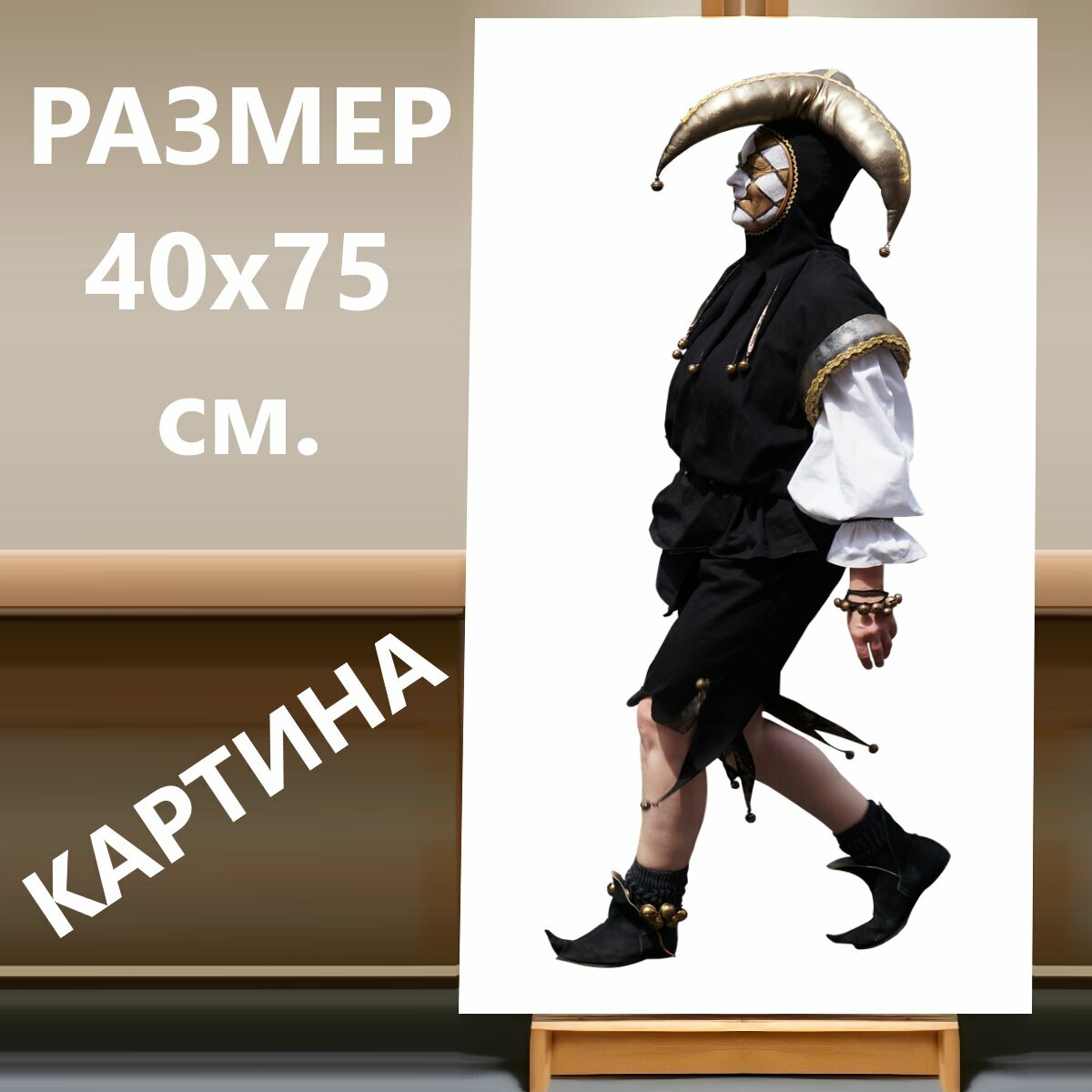 10 цен на Картина на холсте "Шутник, шут, арлекин" на подрамнике 40х75 см. для интерьера