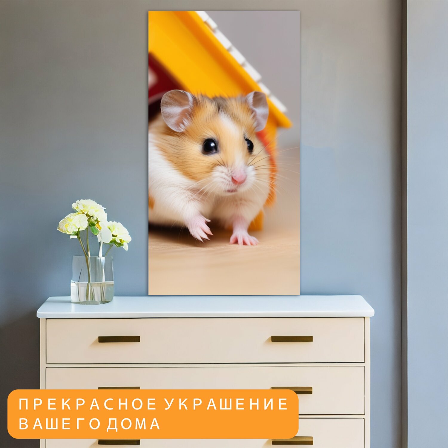 10 цен на Картина на холсте для любителей животных "Домашние питомцы, хомяк, домашний" на подрамнике 40х75 см. для интерьера