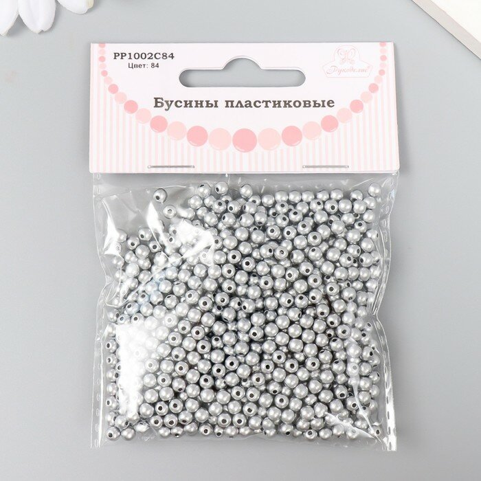 10 цен на Набор бусин "Рукоделие" пластик, диаметр 4 мм, 25 гр, серебряный