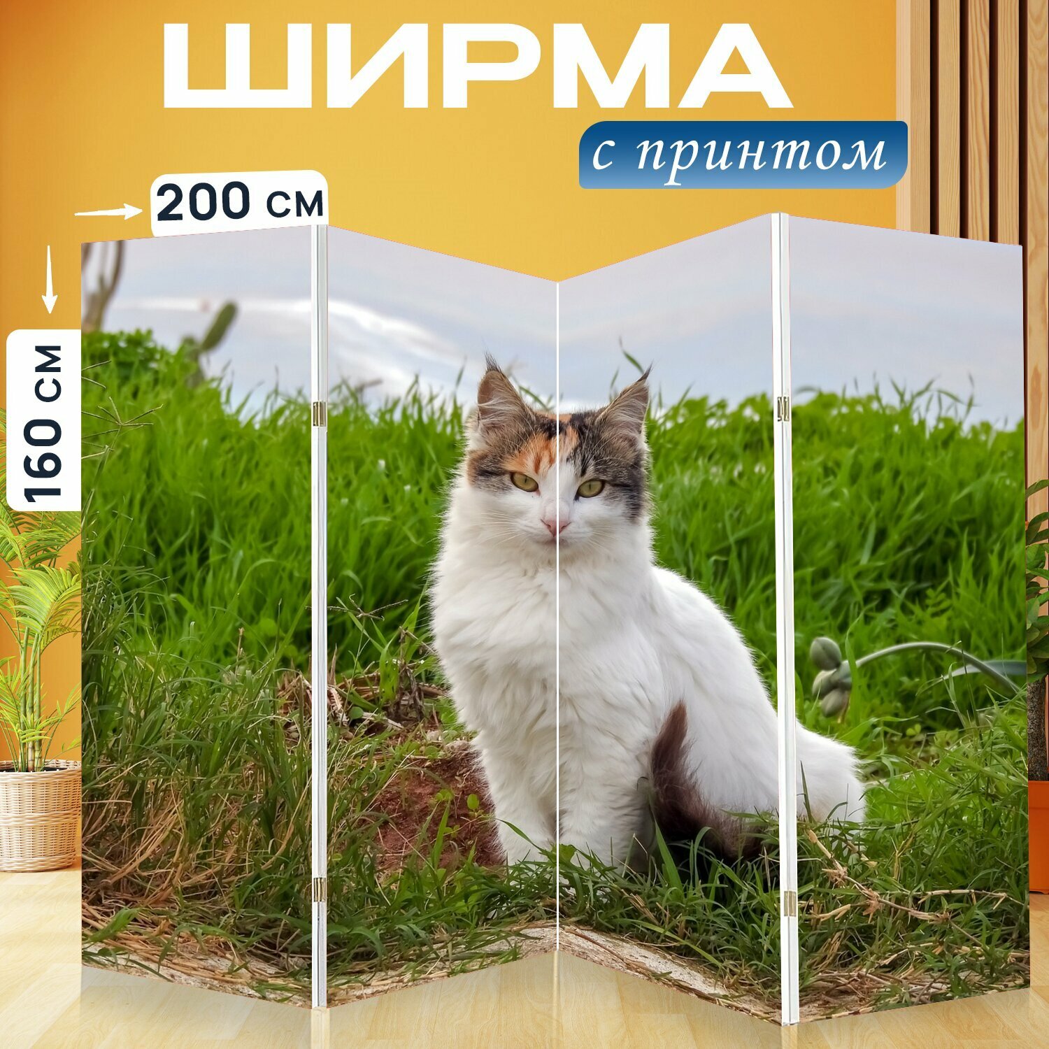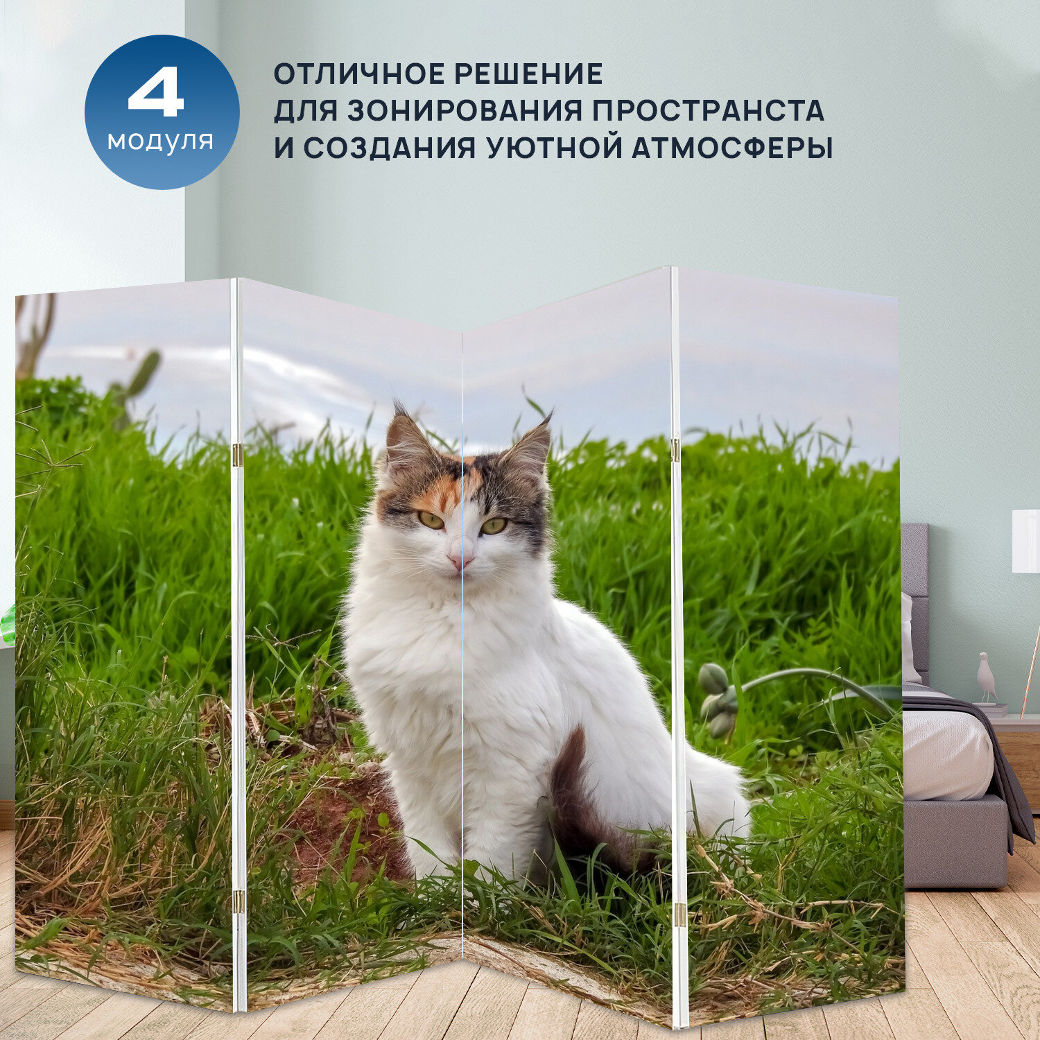 Ширма "Кошка, бродячая кошка, животное" раскладная перегородка для зонирования с принтом на холсте информация: