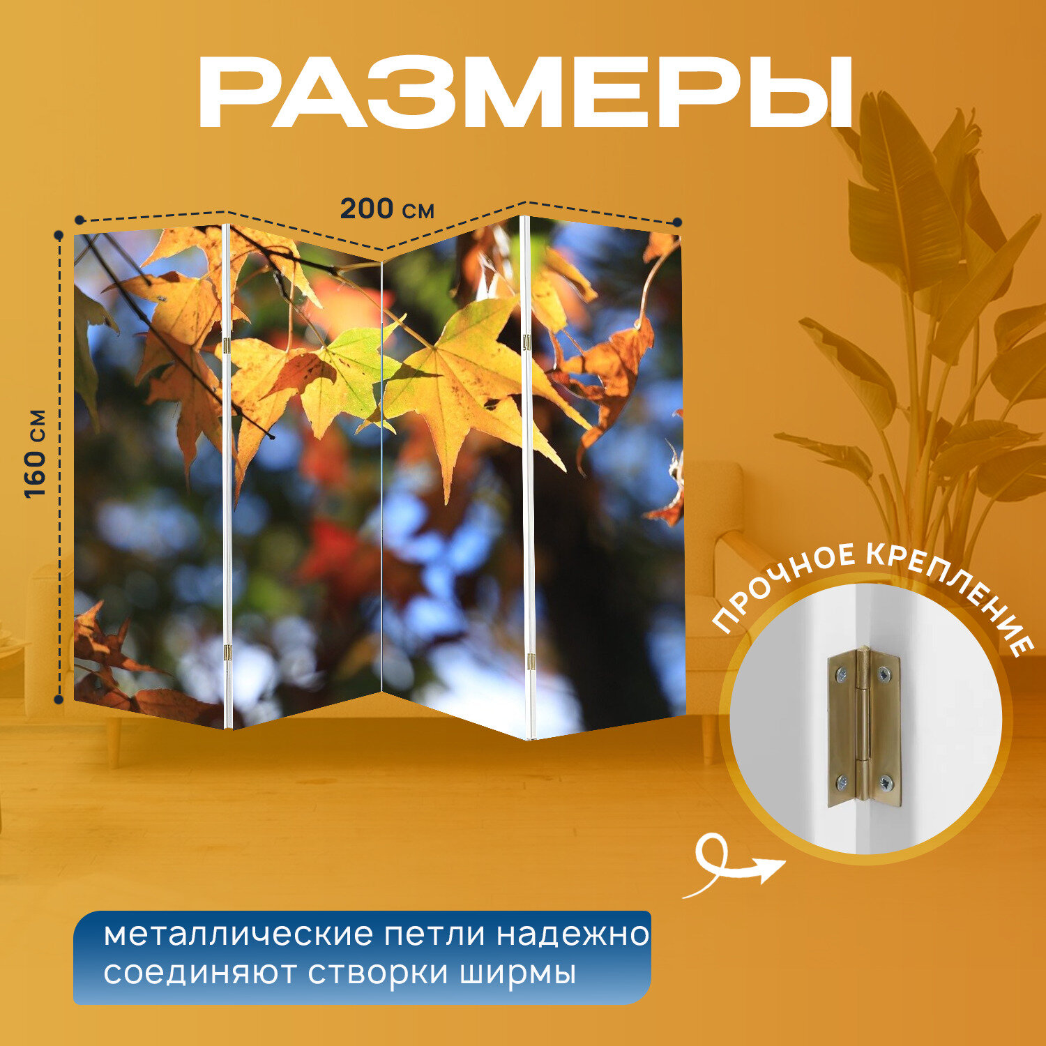 Ширма "Клен, листья, осень" раскладная перегородка для зонирования с принтом на холсте информация: