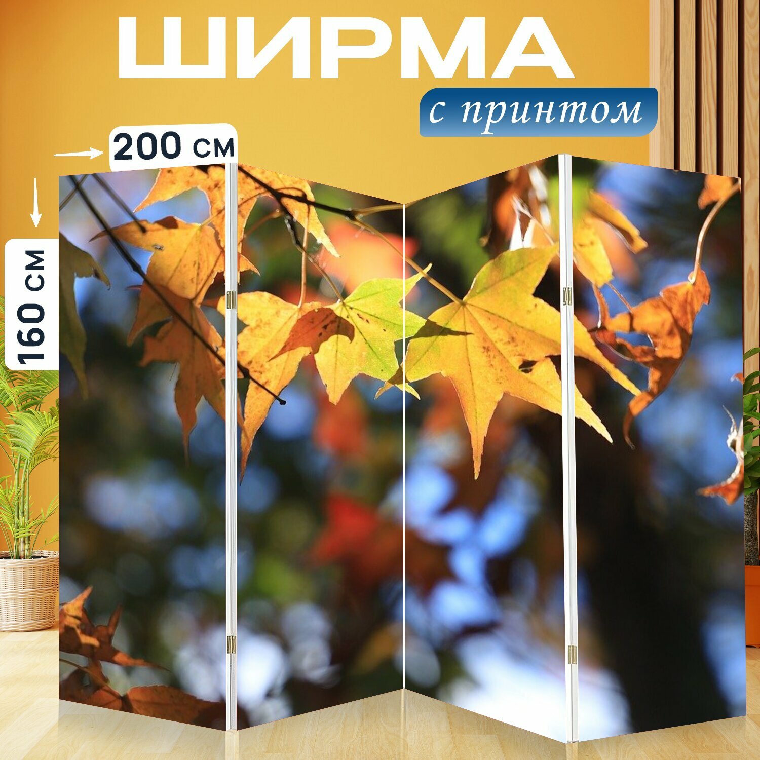 10 цен на Ширма "Клен, листья, осень" раскладная перегородка для зонирования с принтом на холсте