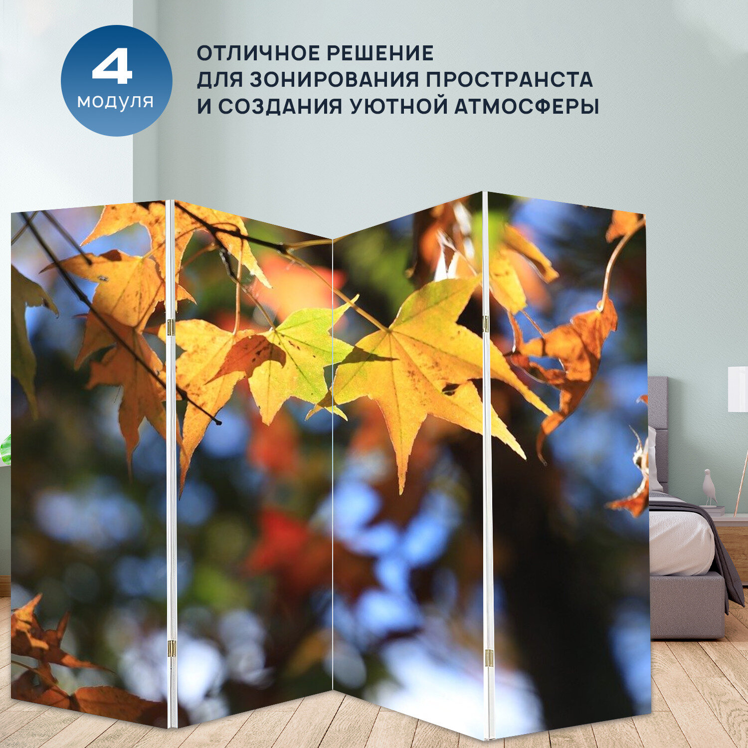 Отзывы на Ширма "Клен, листья, осень" раскладная перегородка для зонирования с принтом на холсте
