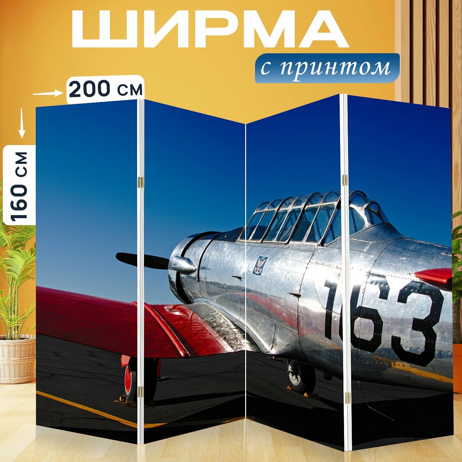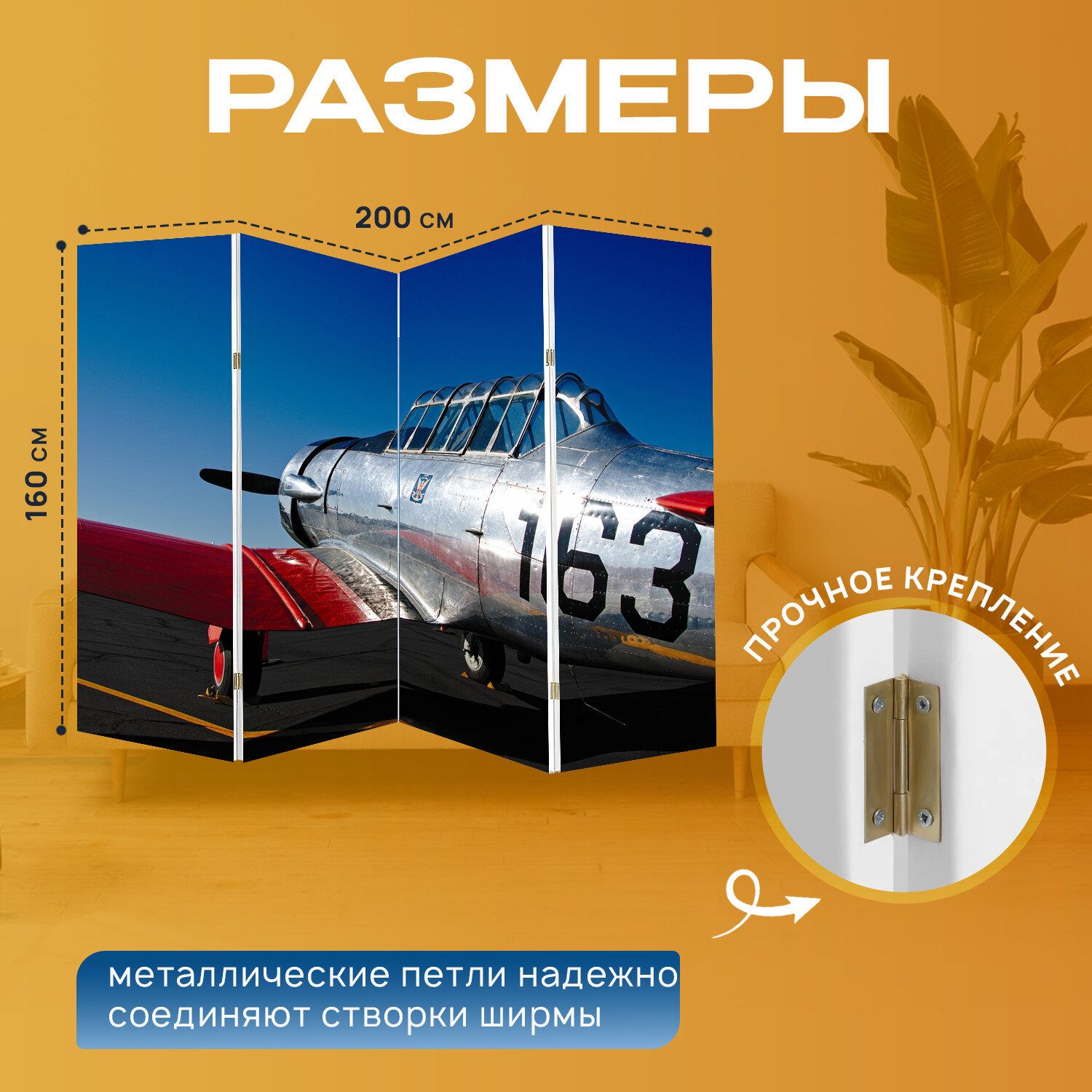 Ширма "Аэропорт, самолет, старый" раскладная перегородка для зонирования с принтом на холсте информация: