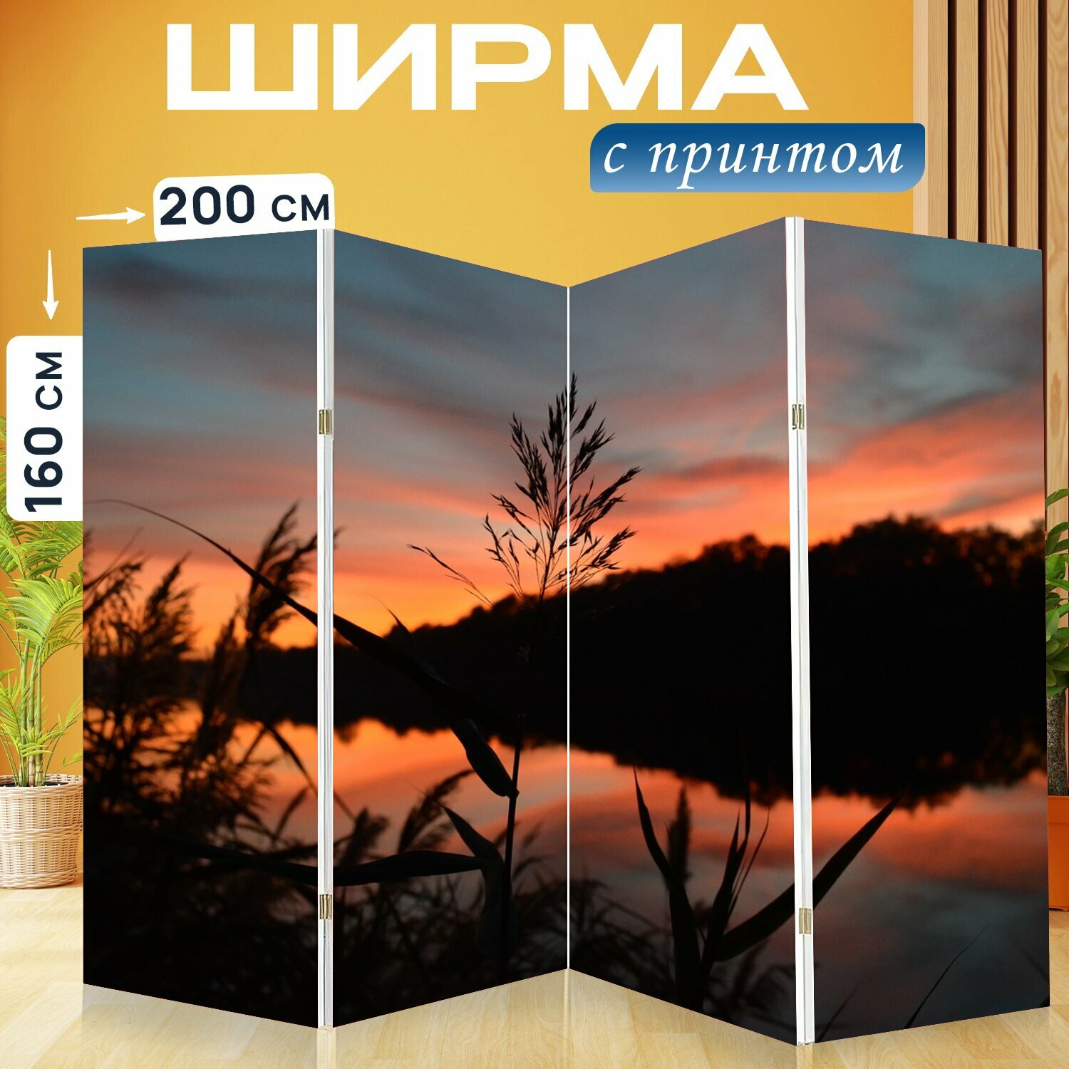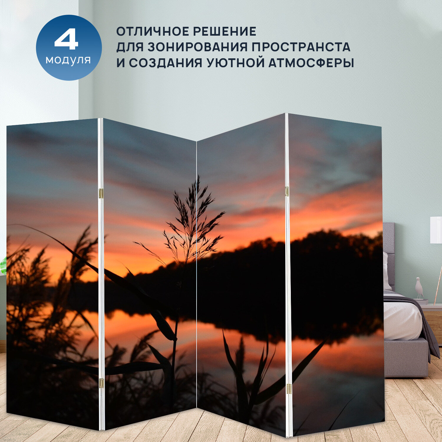 Ширма "Природа, закат, река" раскладная перегородка для зонирования с принтом на холсте информация: