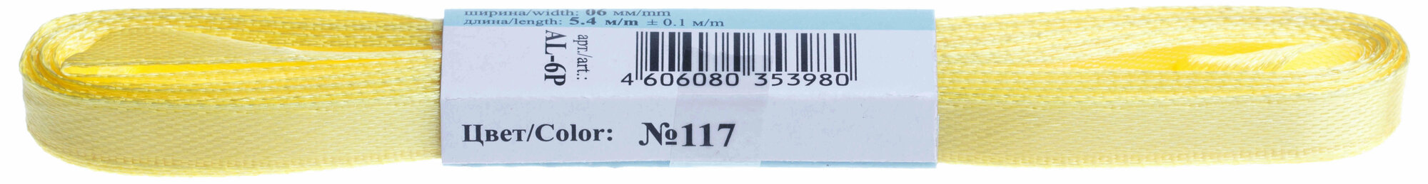 Лента атласная однотонная Gamma фасовка, 117, бледно-желтый, 6мм, 5.4м, 3шт информация: