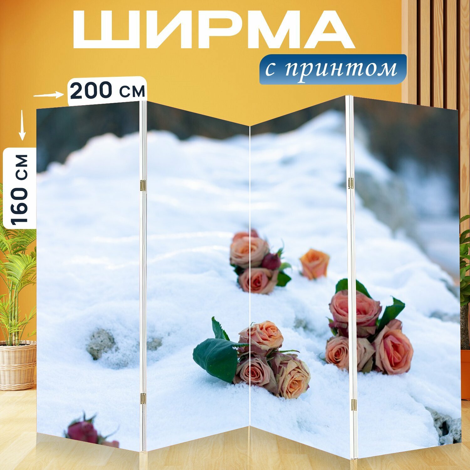 10 цен на Ширма "Зима, розы, природа" раскладная перегородка для зонирования с принтом на холсте