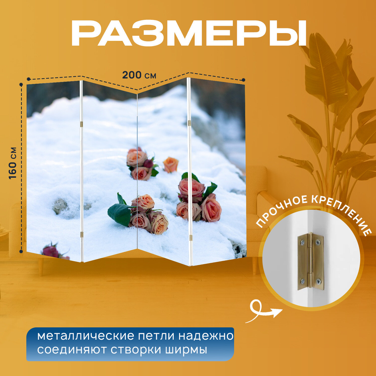 Ширма "Зима, розы, природа" раскладная перегородка для зонирования с принтом на холсте информация: