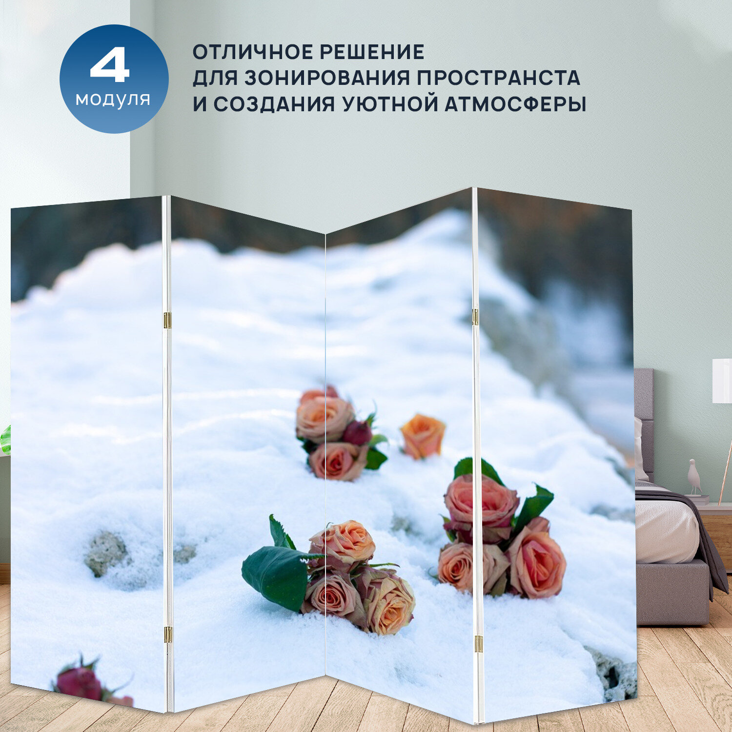 Отзывы на Ширма "Зима, розы, природа" раскладная перегородка для зонирования с принтом на холсте
