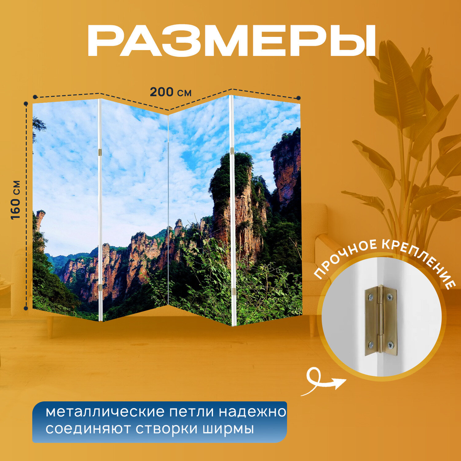 Ширма "Горы, зеленый, природа" раскладная перегородка для зонирования с принтом на холсте информация: