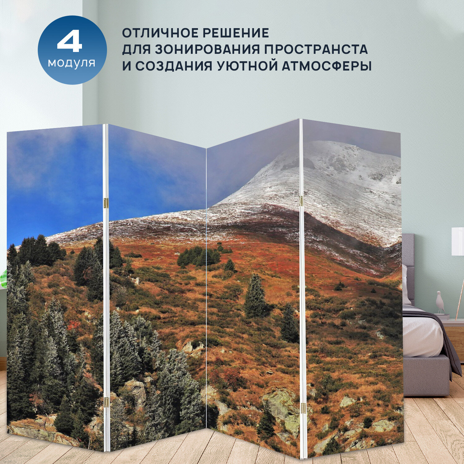 Отзывы на Ширма "Альпы, снежный, вверх" раскладная перегородка для зонирования с принтом на холсте