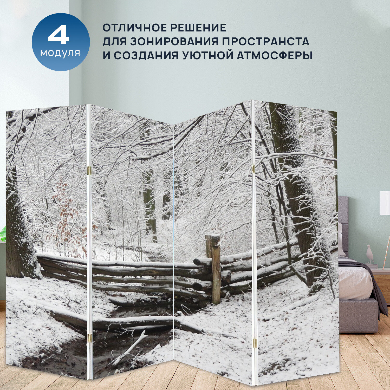 Ширма "Зима, лес, ручей" раскладная перегородка для зонирования с принтом на холсте информация: