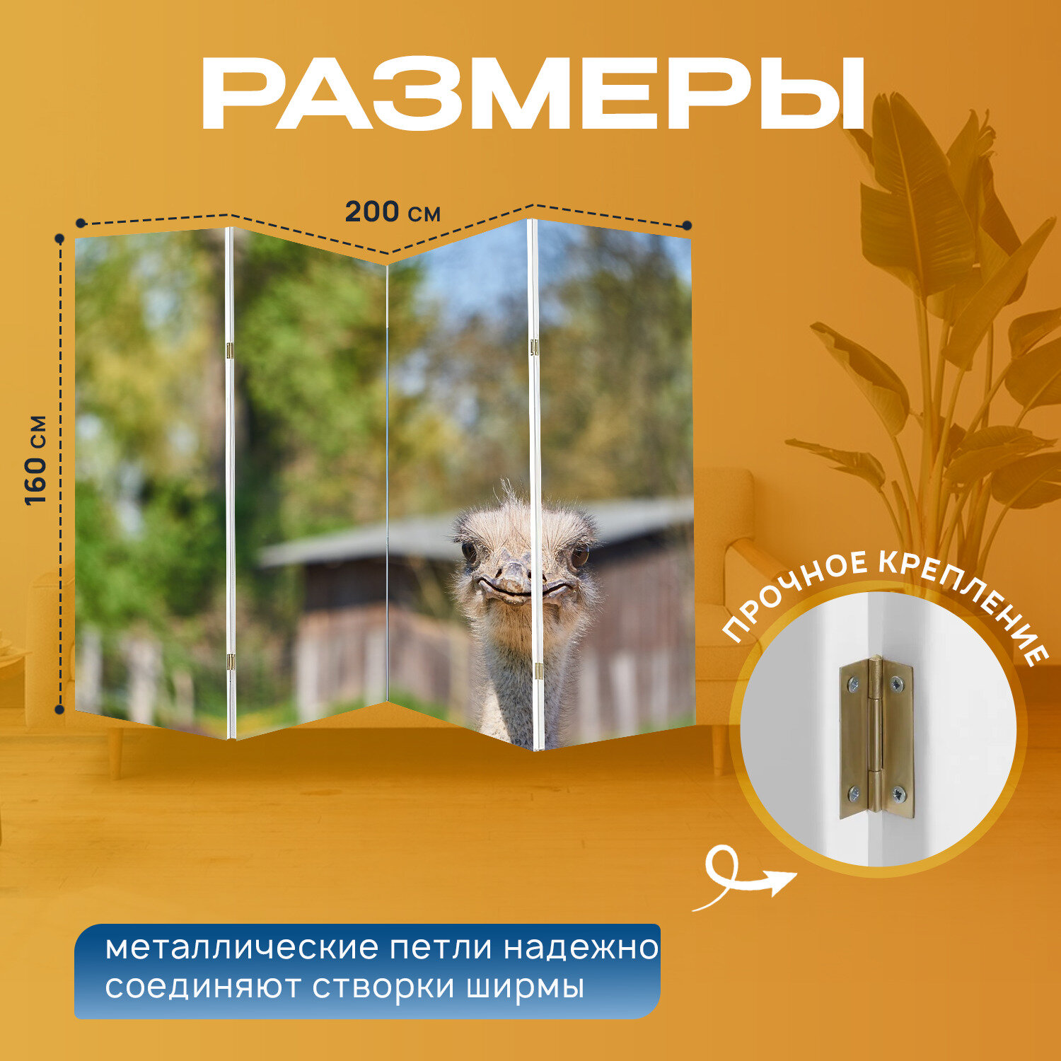 Ширма "Страус, птица, животное" раскладная перегородка для зонирования с принтом на холсте информация: