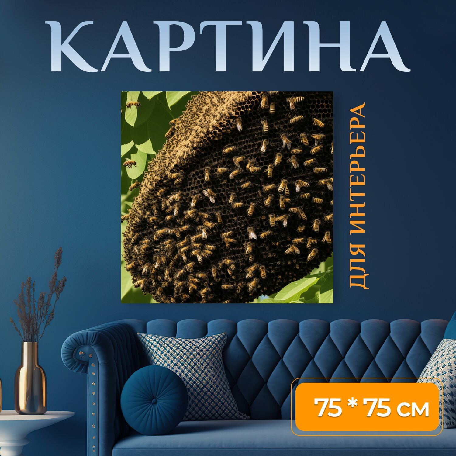 10 цен на Картина на холсте любителям природы "Насекомые, пчела, много пчел" на подрамнике 75х75 см. для интерьера