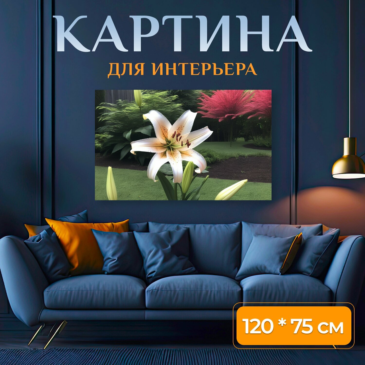 10 цен на Картина на холсте любителям природы "Цветы, лилия, растущая" на подрамнике 120х75 см. для интерьера