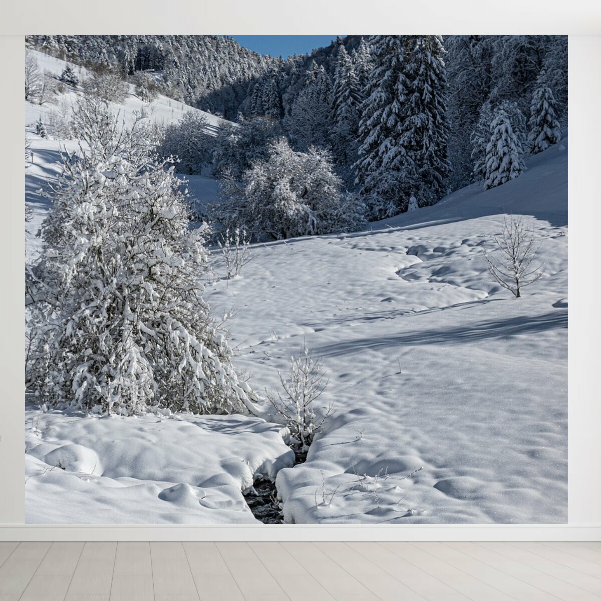 Фотообои "Зима, снег, деревья" 300x270 см. флизелиновыена стену информация: