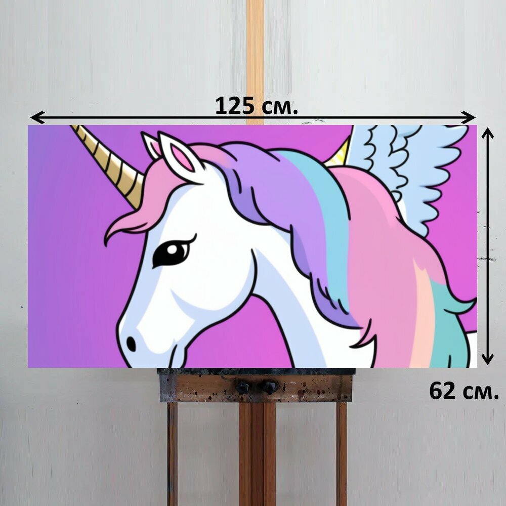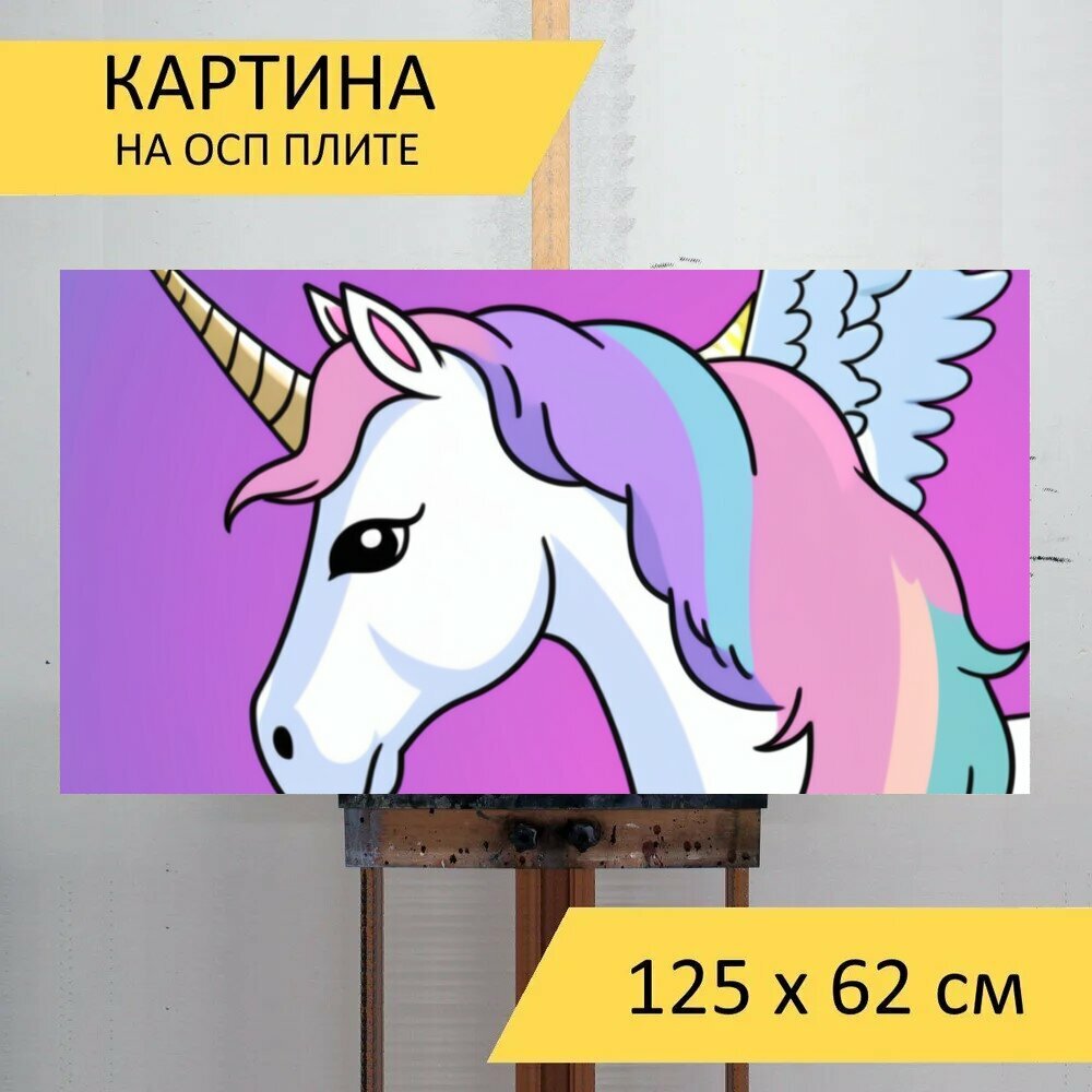 Картина на ОСП любителям сказок "Мистические персонажи, единорог, мультяшный" 125x62 см. для интерьера на стену информация: