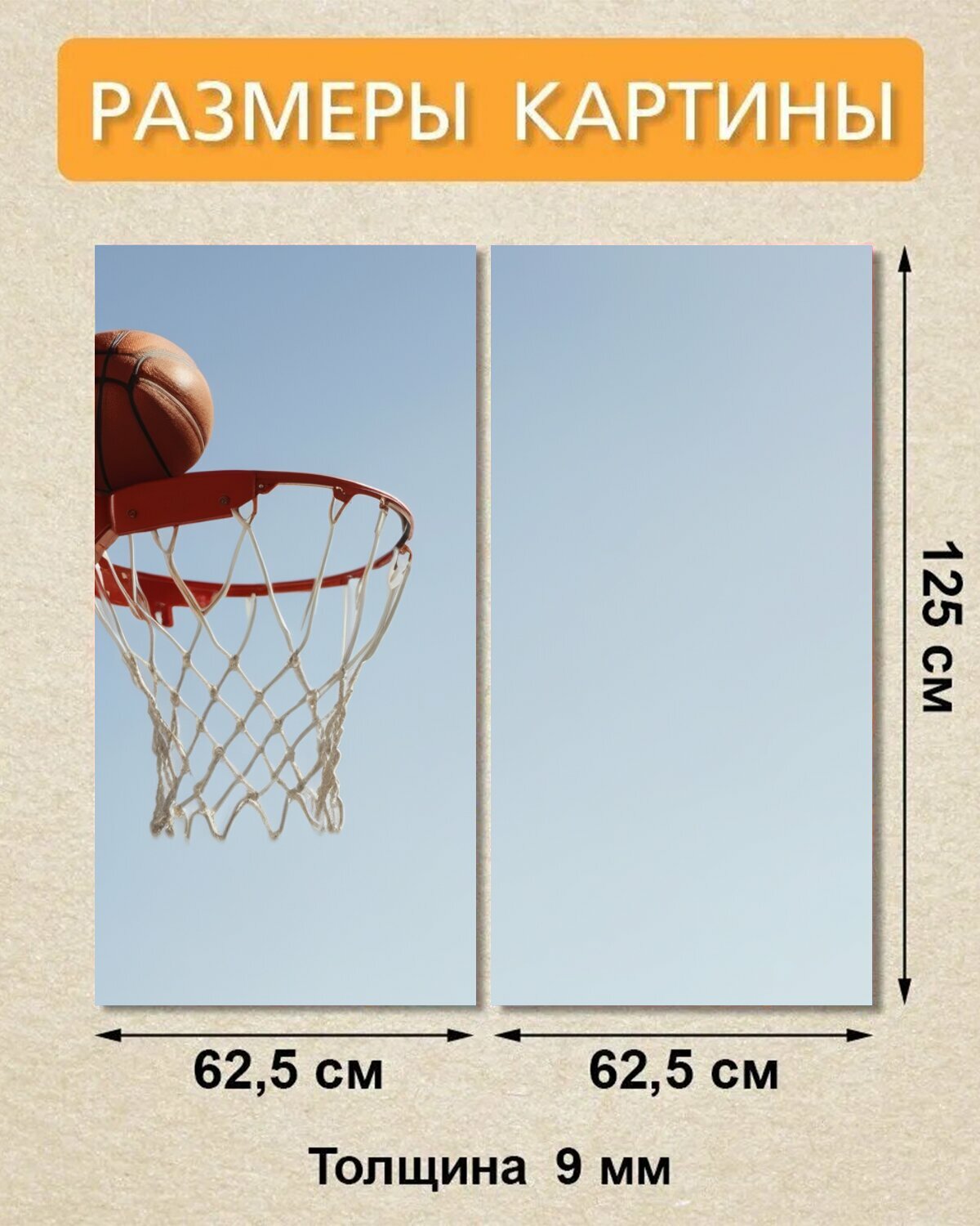 Отзывы на Модульная картина на ОСП для любителей спорта "Спортивные игры, баскетбол, кольцо" 125x125 см. 2 части для интерьера на стену