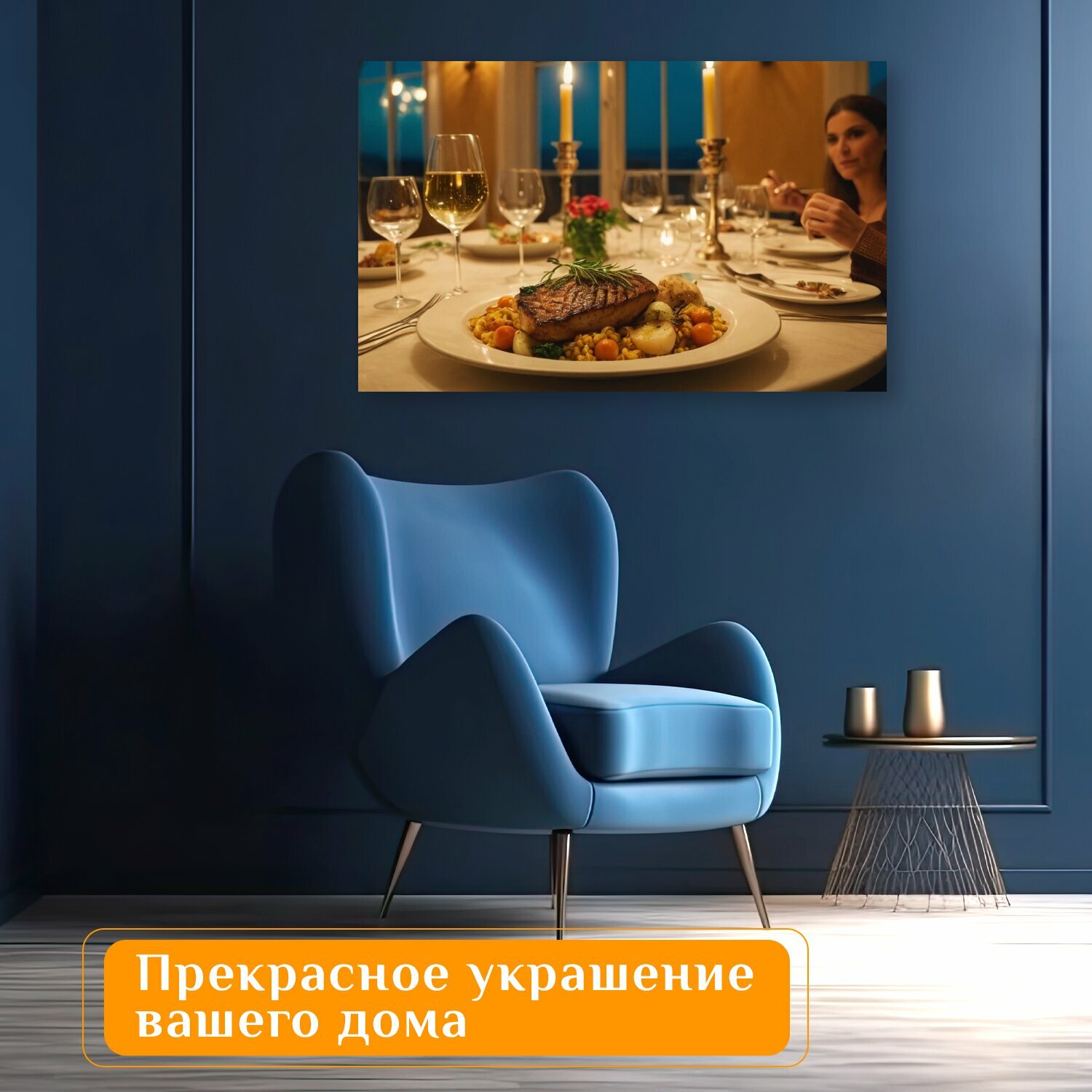 Отзывы на Картина на холсте любителям вкусного "Еда, ресторан, ужин с девушкой" на подрамнике 120х75 см. для интерьера