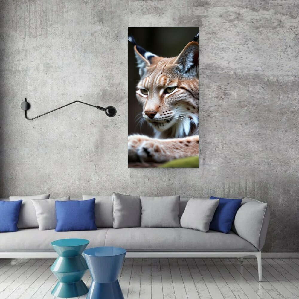 Вертикальная картина на ОСП любителям природы "Животные, рысь , с кисточками" 62x125 см. для интерьера на стену информация: