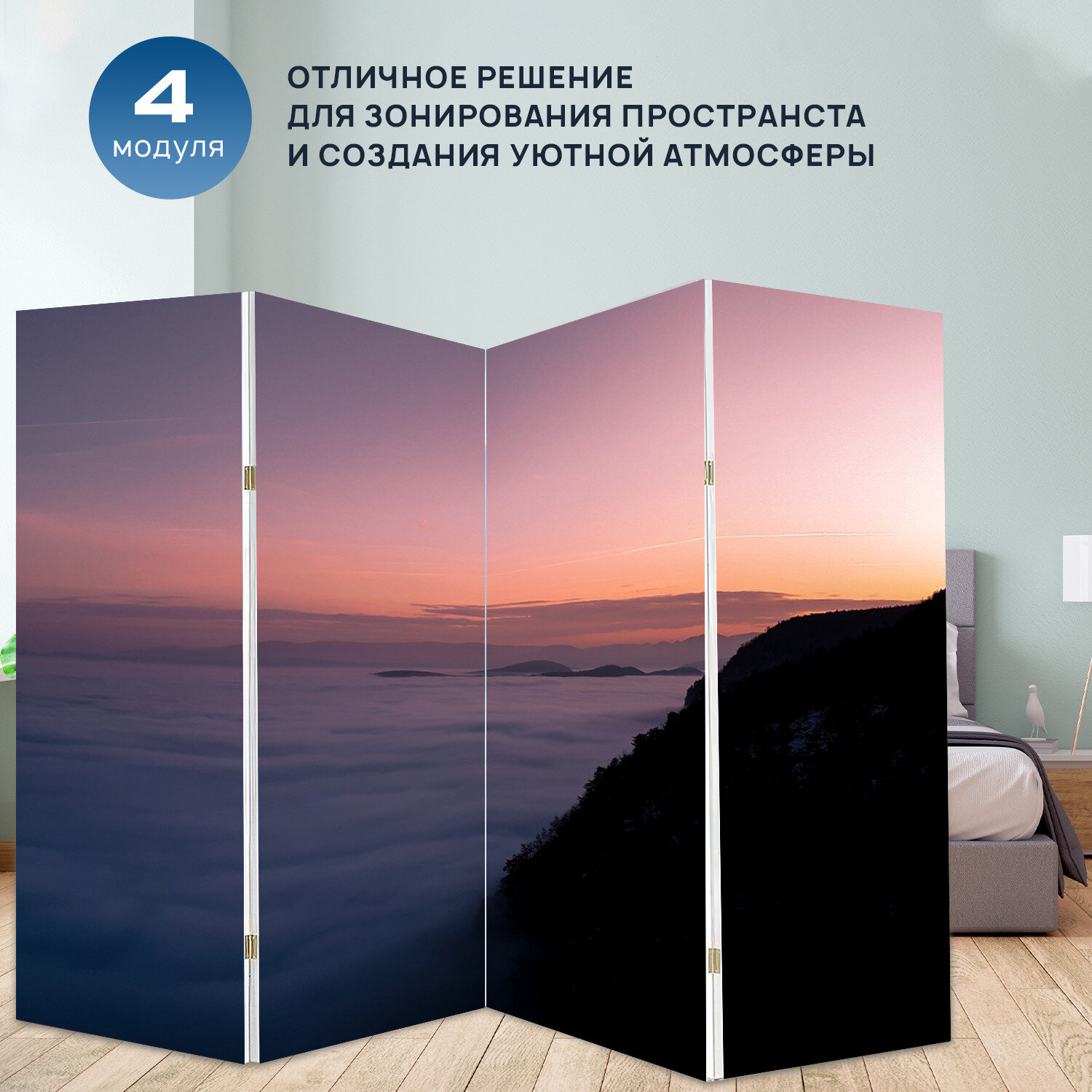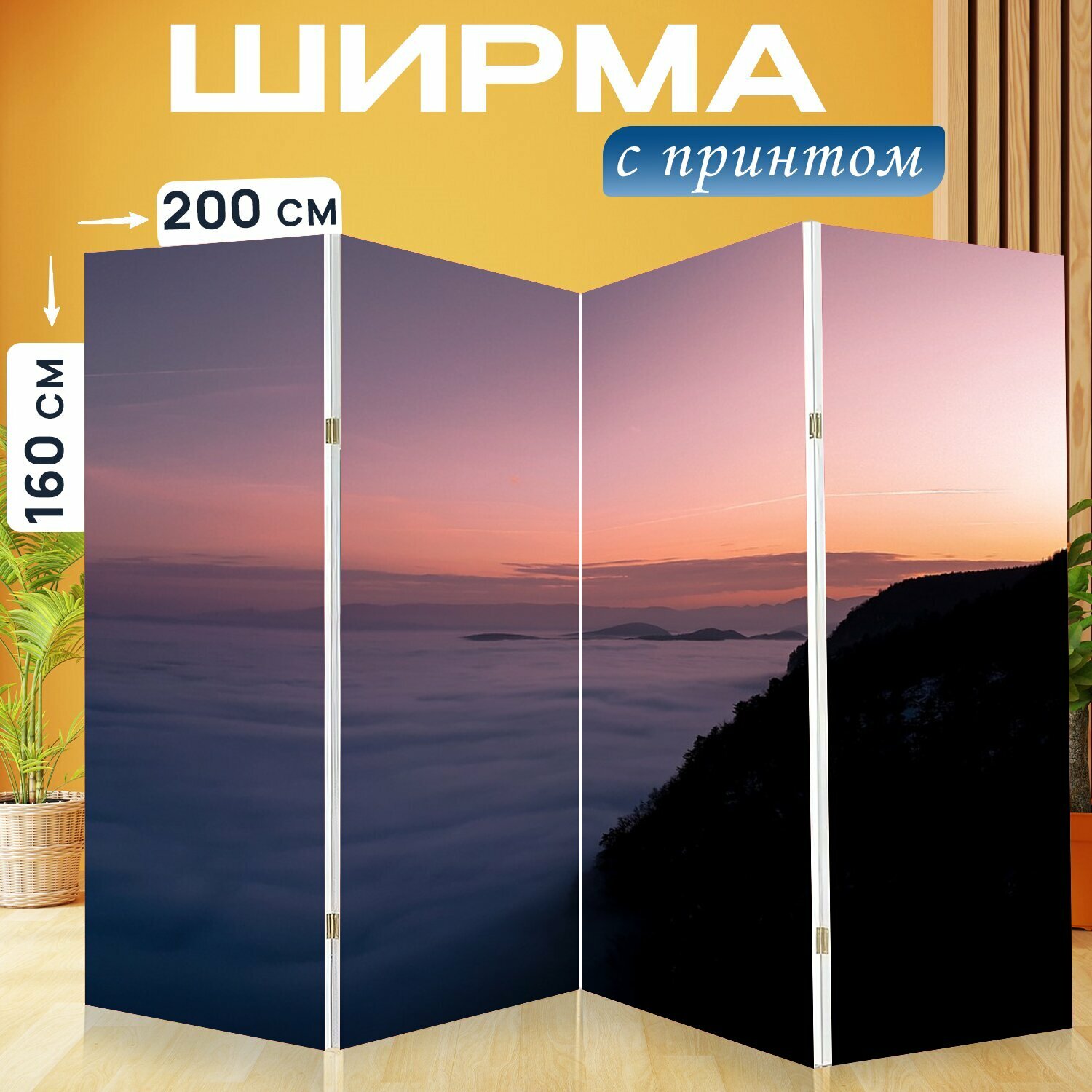 10 цен на Ширма "Заход солнца, гора, пейзаж" раскладная перегородка для зонирования с принтом на холсте