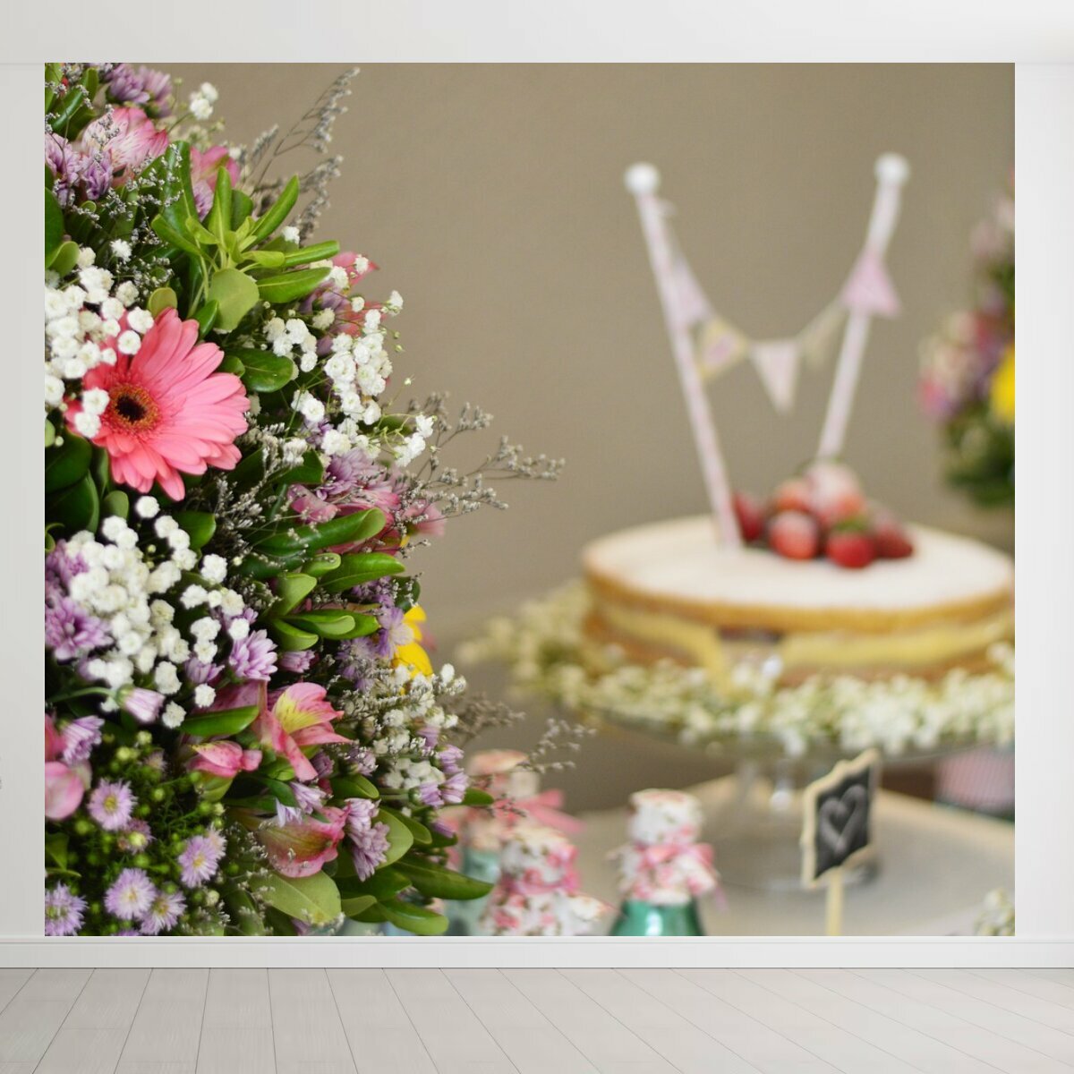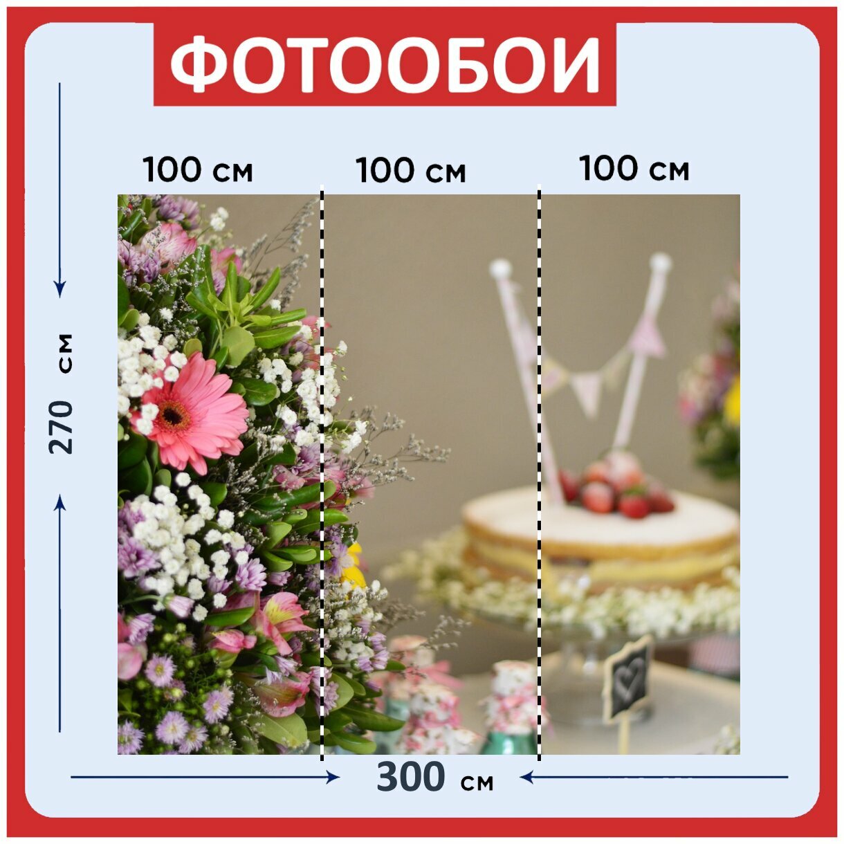Фотообои "Цветок, цветочная композиция, торт" 300x270 см. флизелиновыена стену информация: