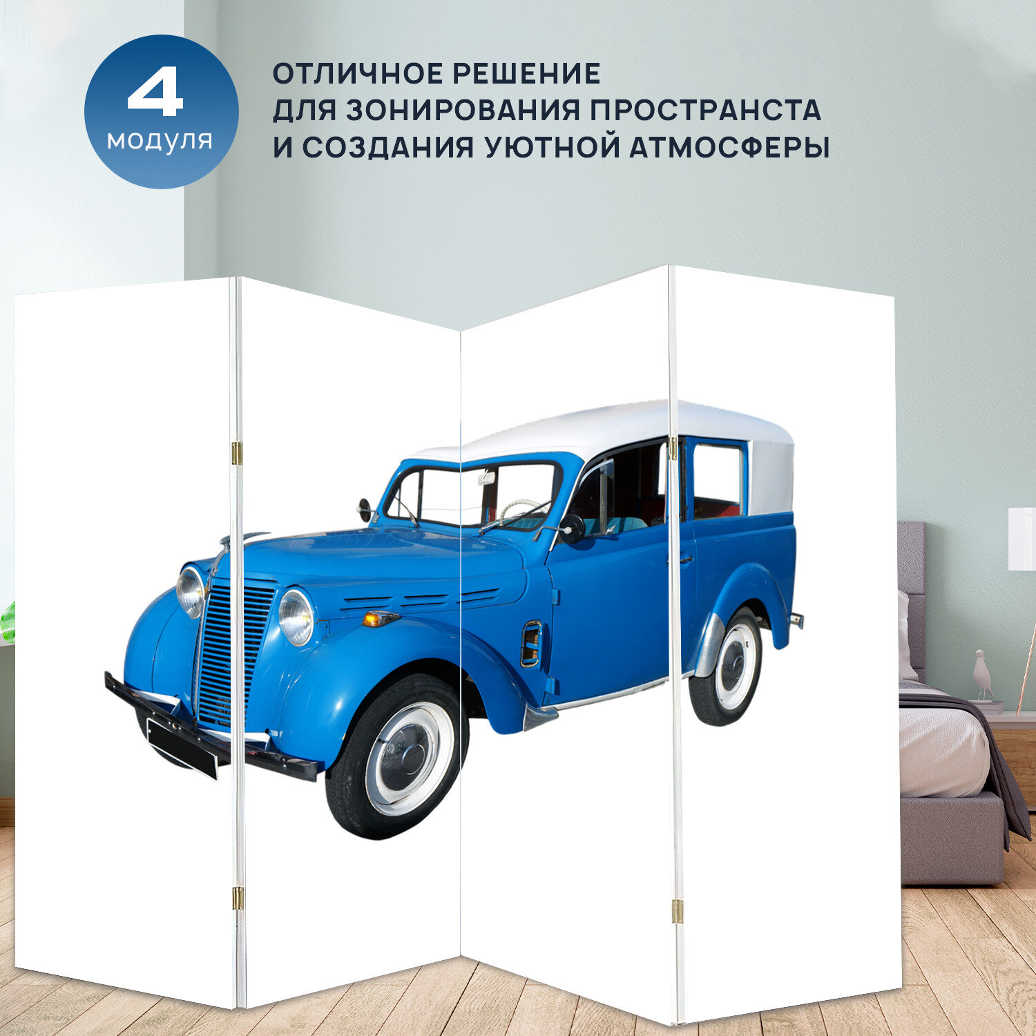 Отзывы на Ширма "Машина, транспортное средство, колеса" раскладная перегородка для зонирования с принтом на холсте