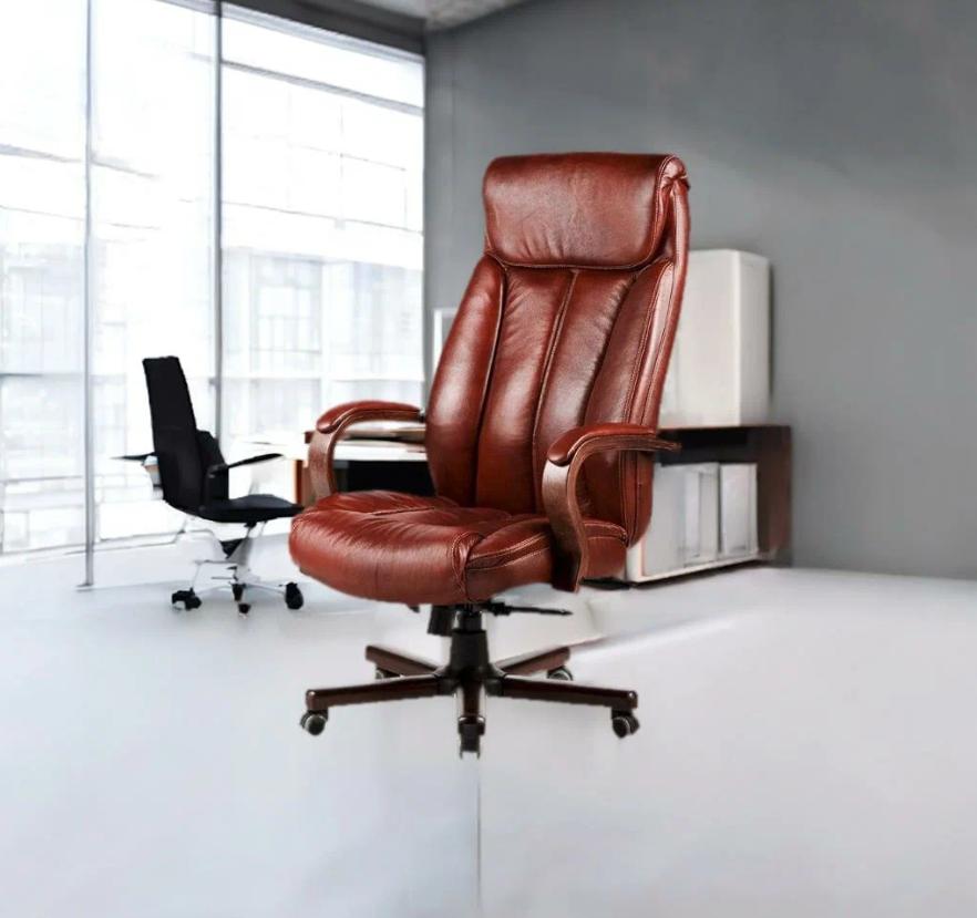 Отзывы на Компьютерное кресло руководителя натуральная кожа коричневая нагрузка до 150 кг./ Офисное кресло Алекс усиленное