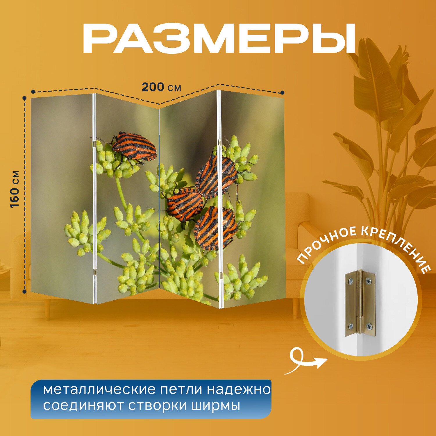 Отзывы на Ширма "Жуки, ошибки, размножение" раскладная перегородка для зонирования с принтом на холсте